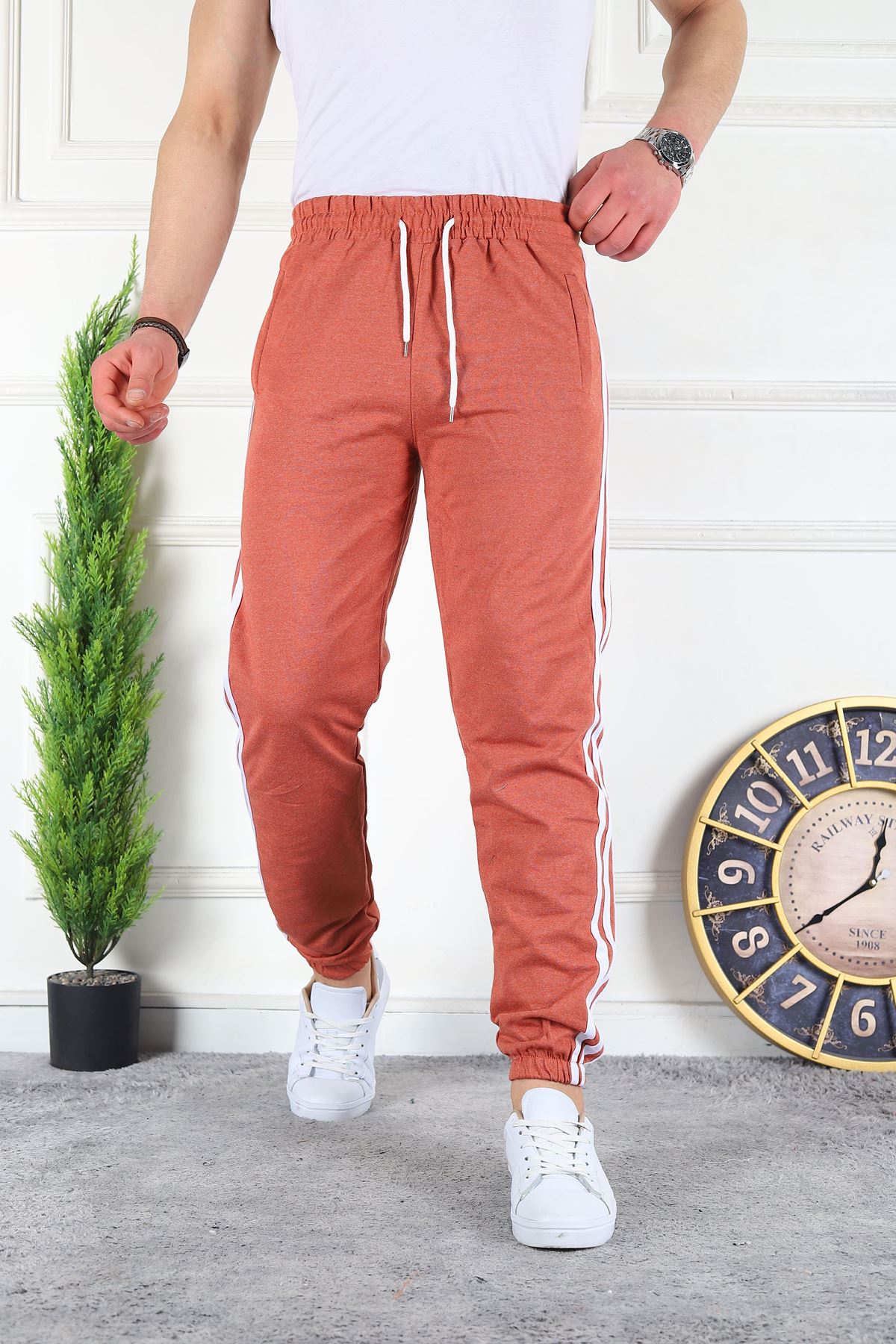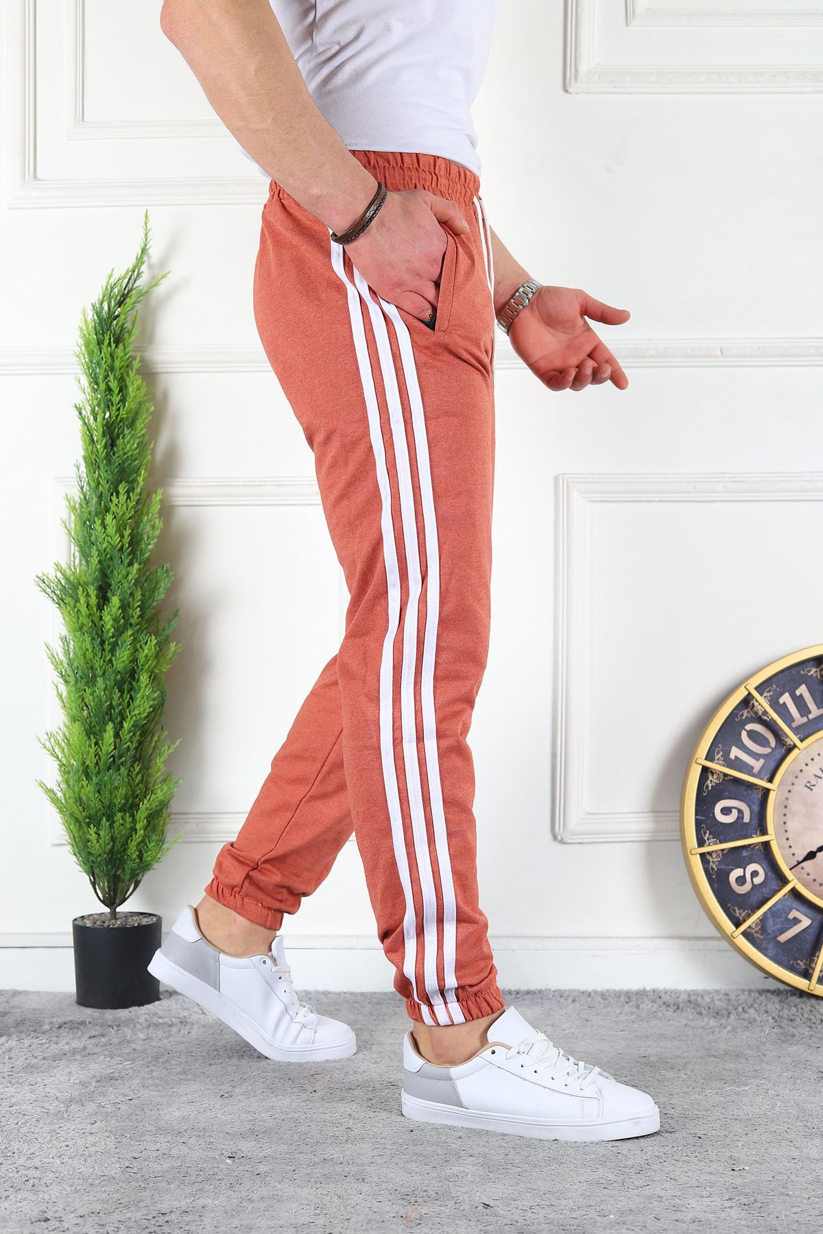 3 Seritli Cepli Unisex Eşofman Altı KİREMİT