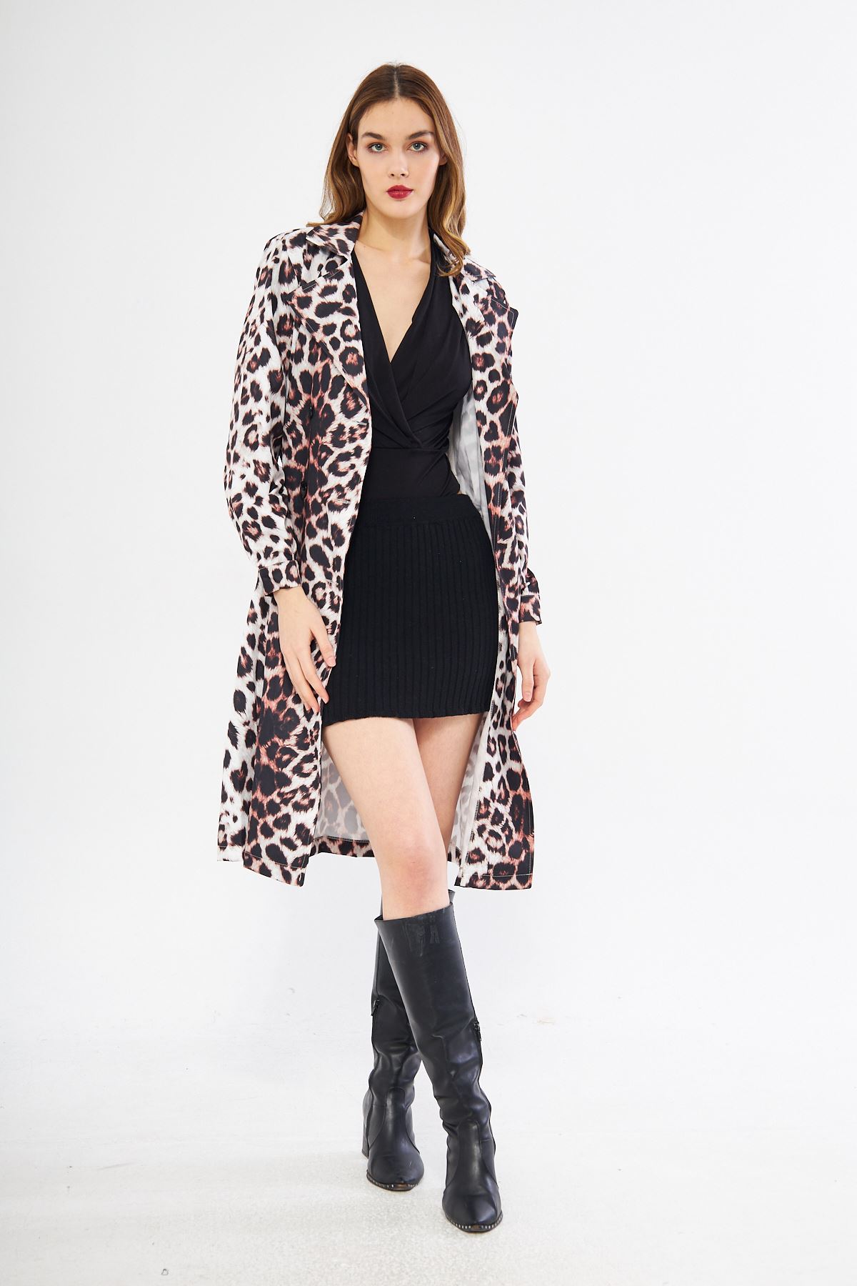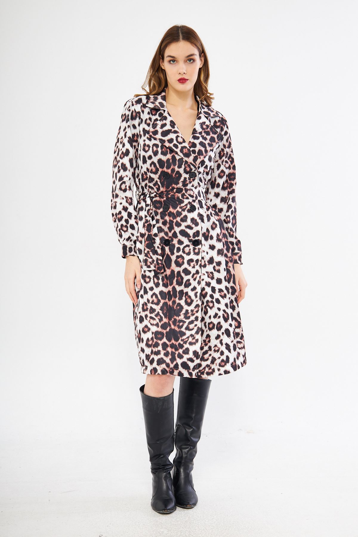 Kadın Beli Büzgülü Su İtici Kapüşonlu Trençkot LEOPAR