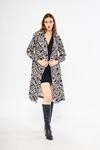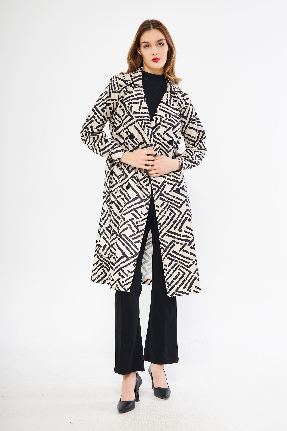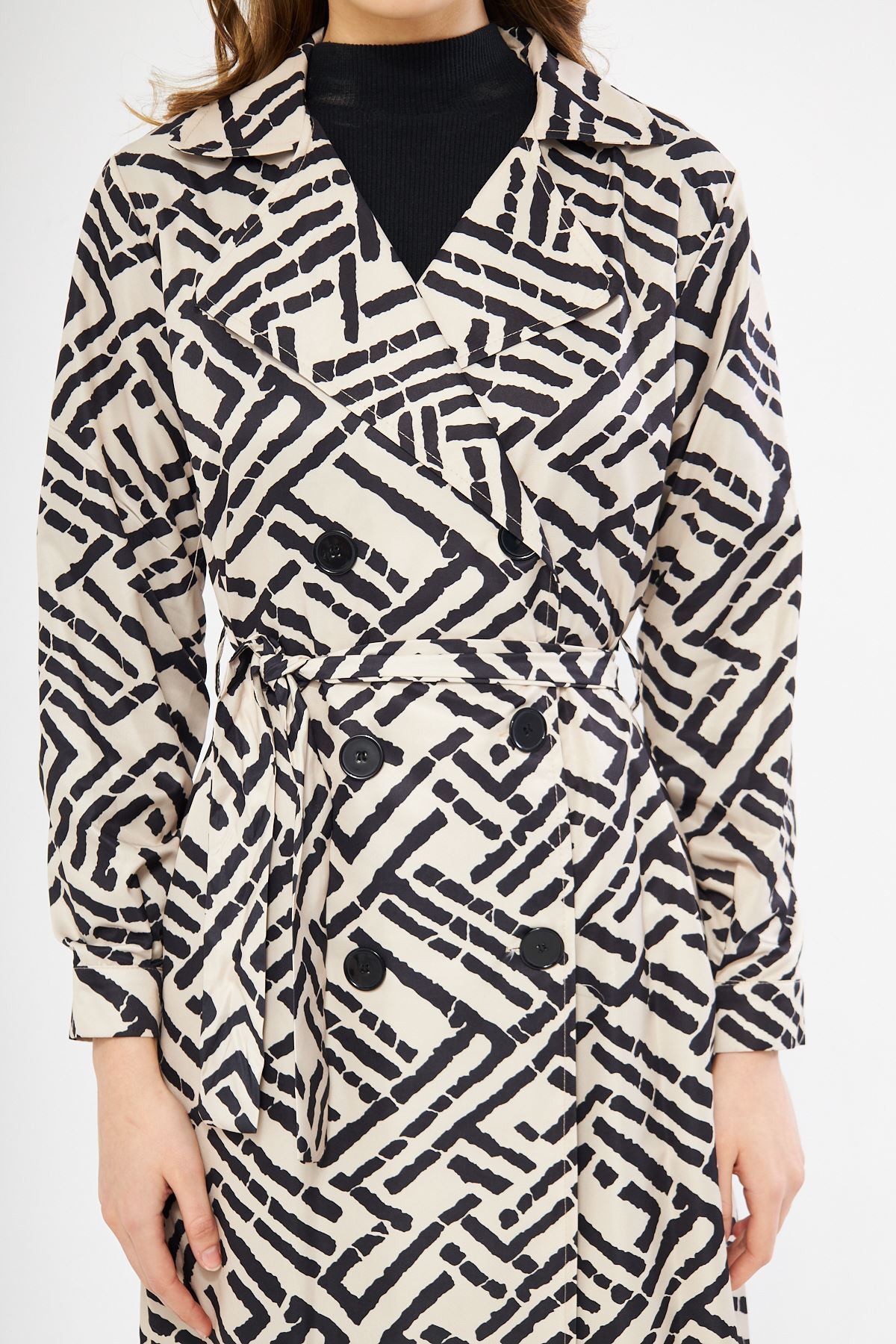 Kadın Fermuarlı Büzgülü Çizgili Siyah Kısa Trençkot