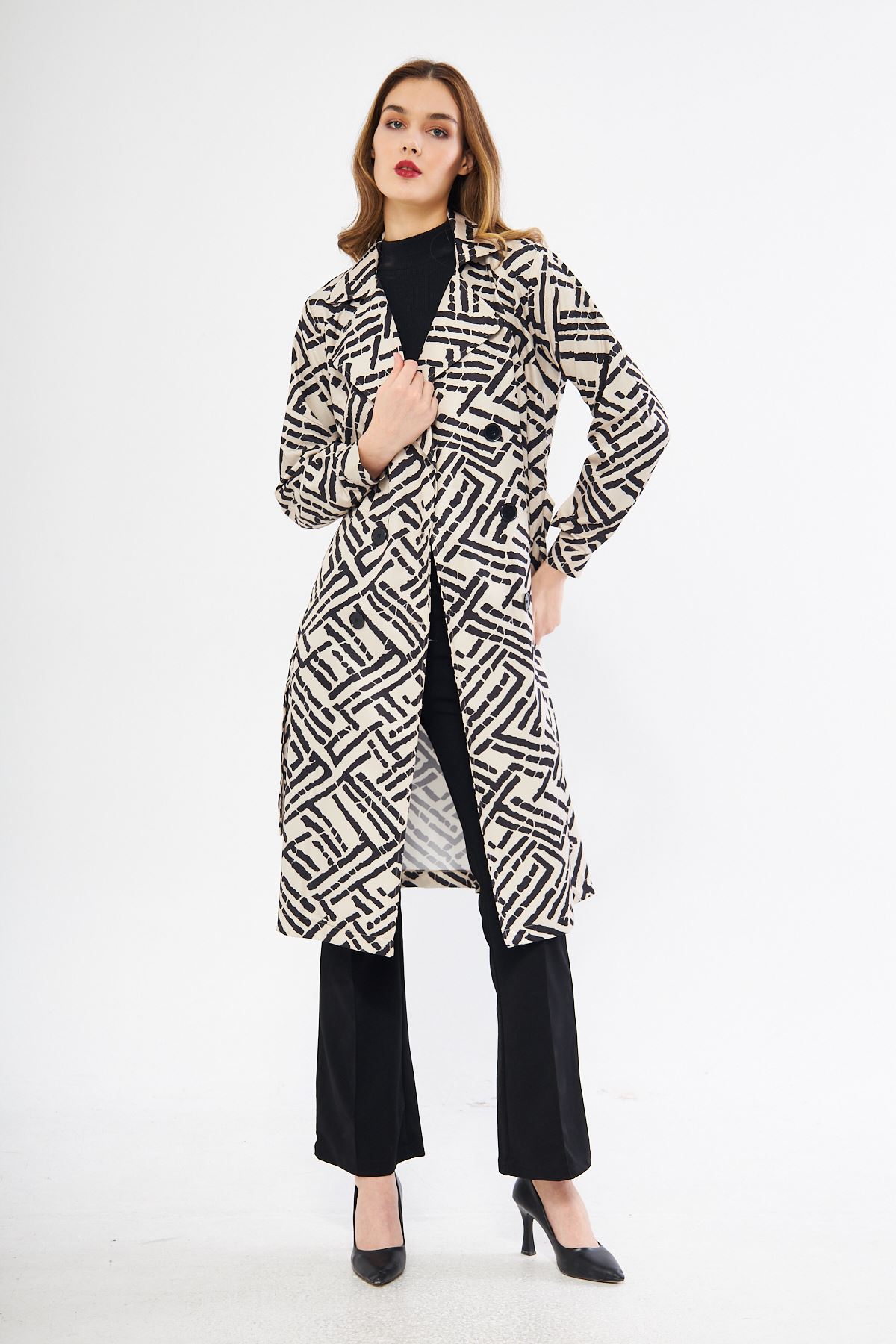 Astarsız Cepli Düğmeli Kuşaklı Yazlık Trenç KREM-SİYAH