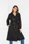 Kadın Kuşaklı Çift Renk Trençkot SİYAH
