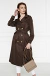 Astarsız Cepli Düğmeli Kuşaklı Yazlık Trenç KAHVE