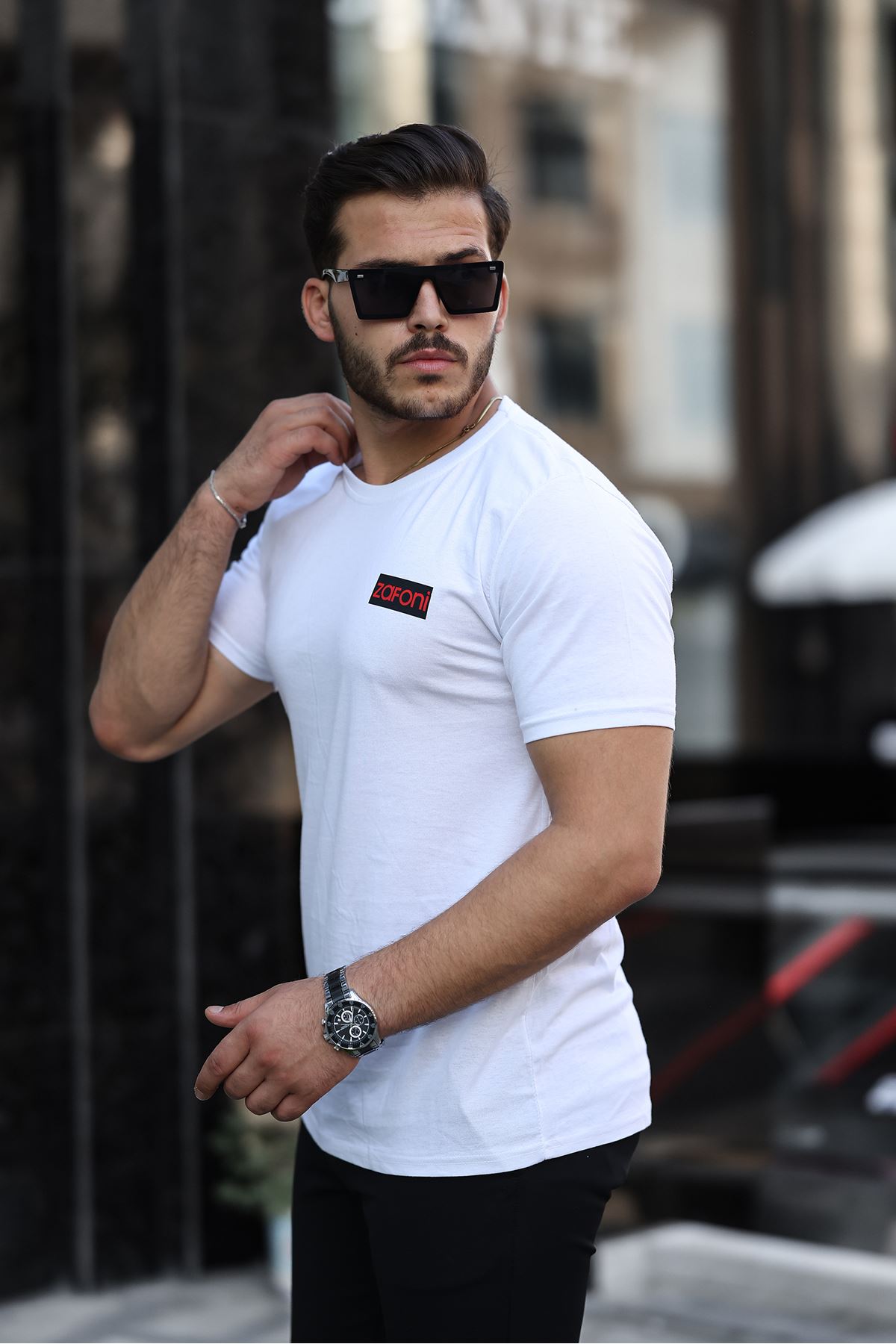 Erkek Slim Fit Waffle Kumaş Sıfır Yaka Nakışlı T-Shirt BEYAZ