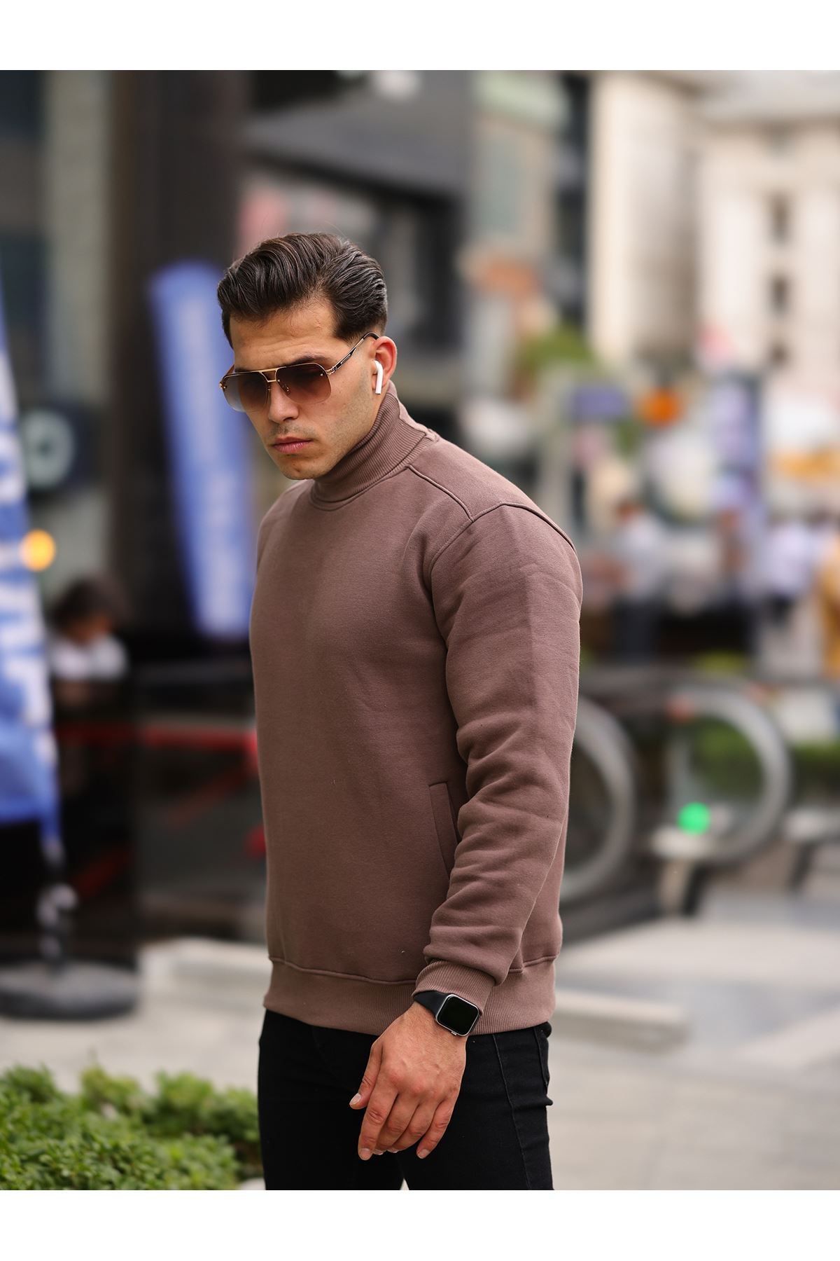 Boğazlı Cepli Üç iplik sweat KAHVE