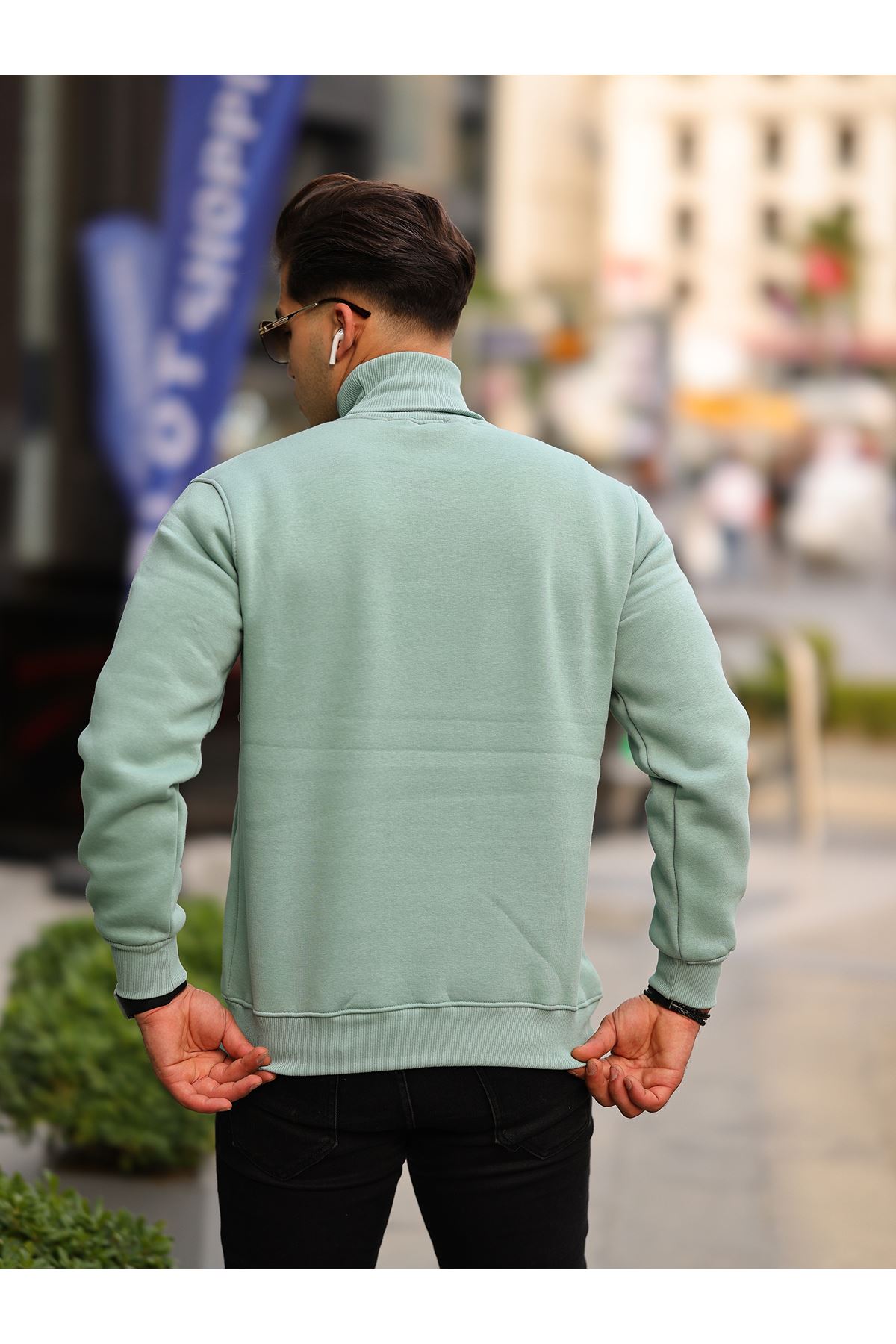 Boğazlı Cepli Üç iplik sweat SU YEŞİLİ