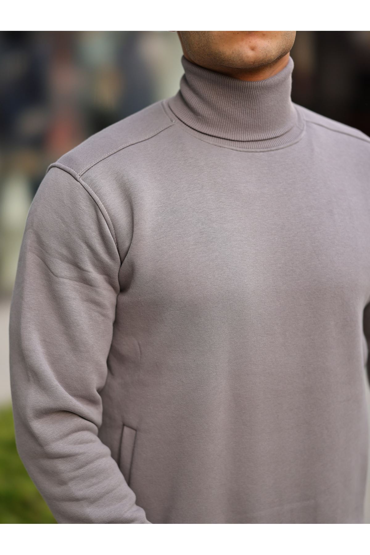 Erkek Bisiklet Yaka Basic Uzun Kollu Dar Haki Sweat