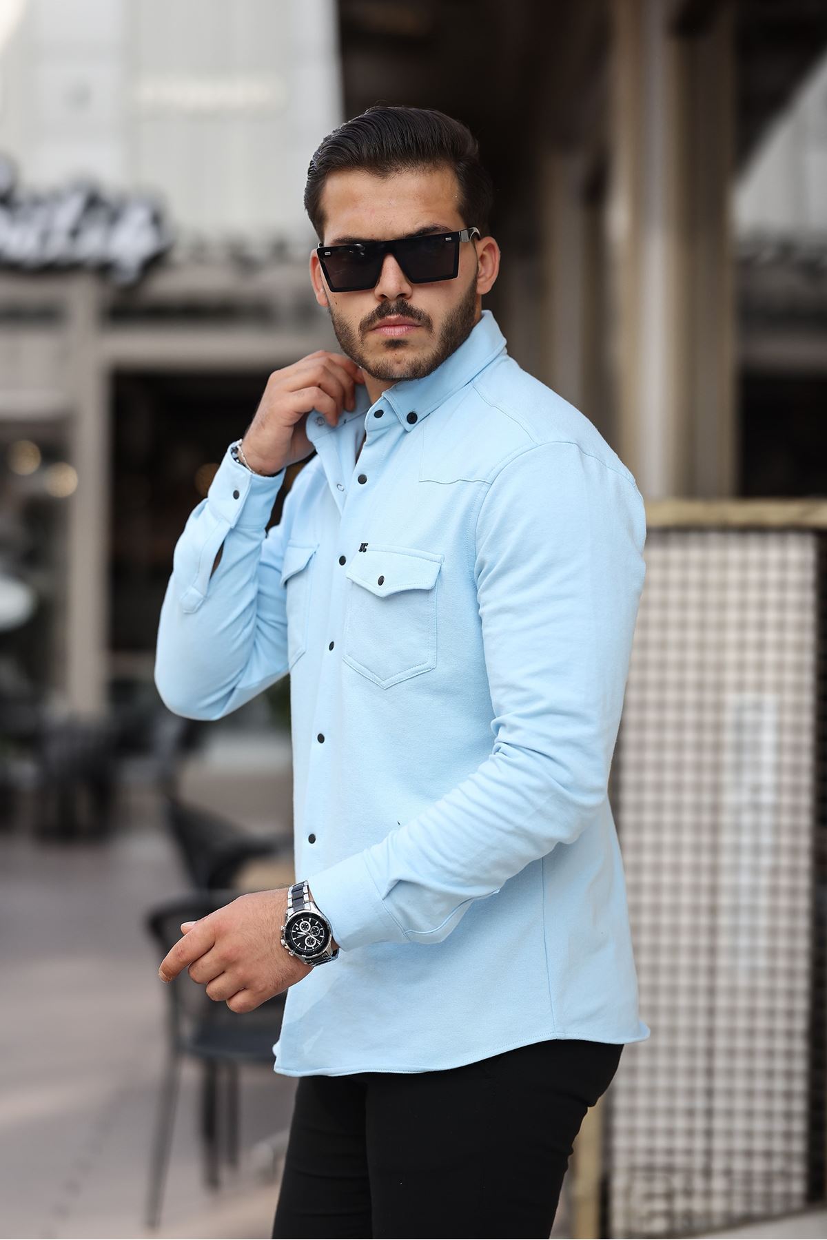 Çıtçıtlı Çift Cep Kışlık Gömlek BEBE MAVİ