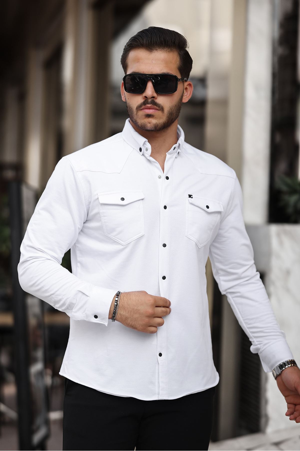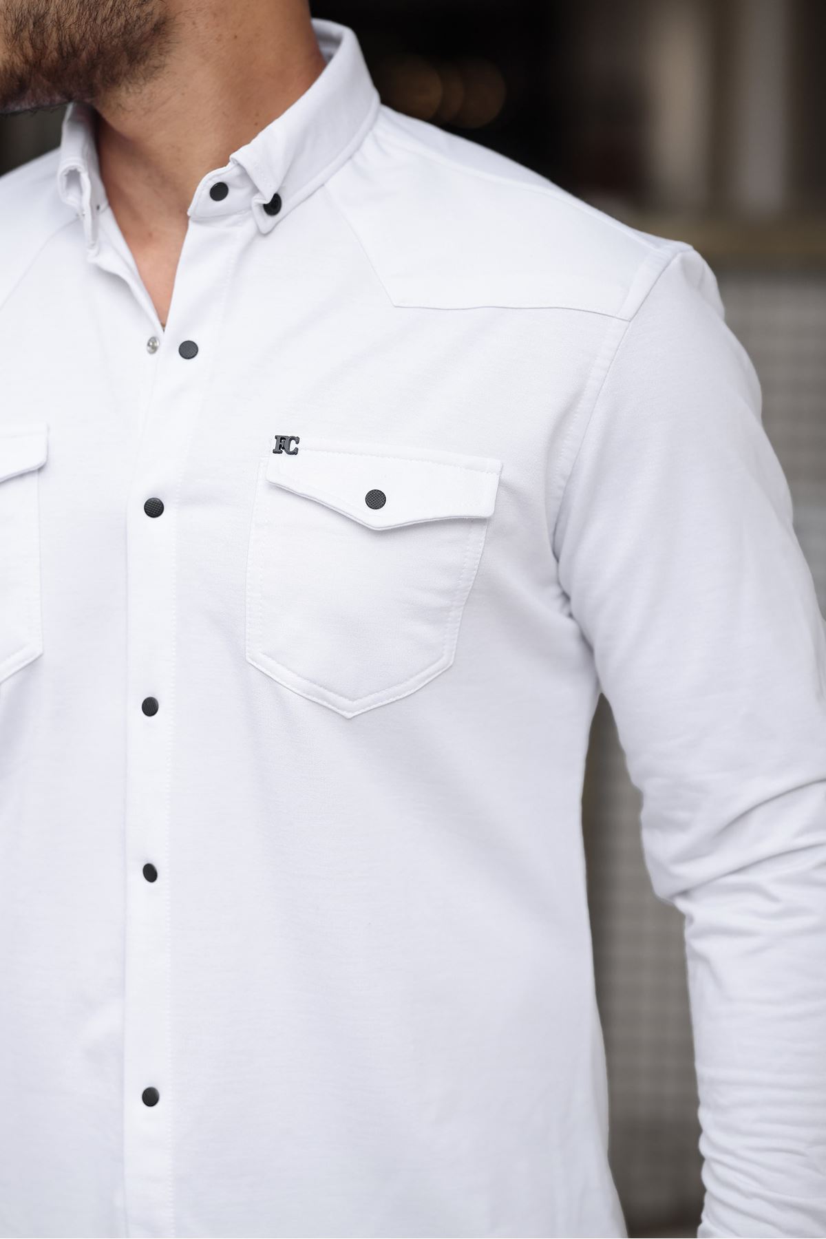 Çıtçıtlı Çift Cep Kışlık Gömlek BEYAZ
