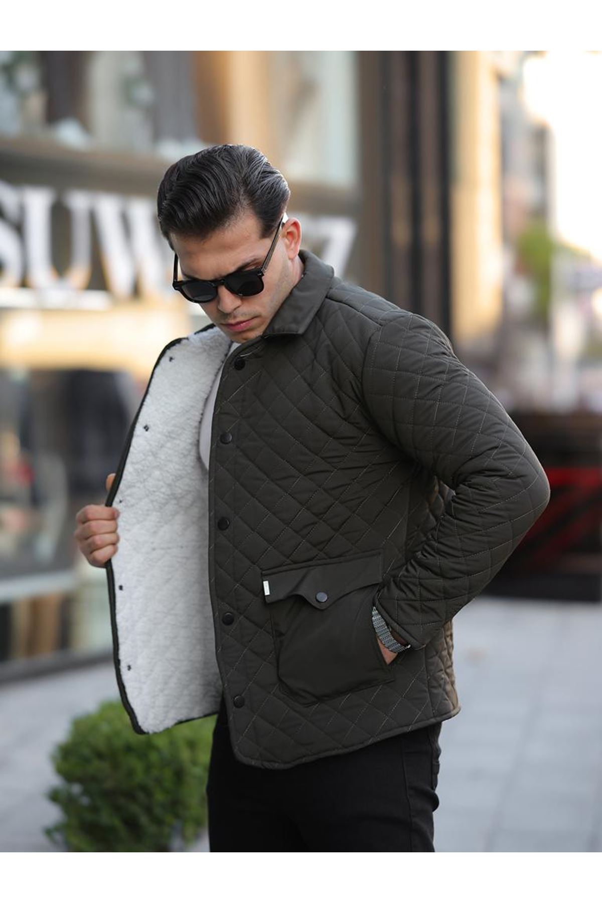 Çıtçıtlı Kürklü Kapitone Mont HAKİ