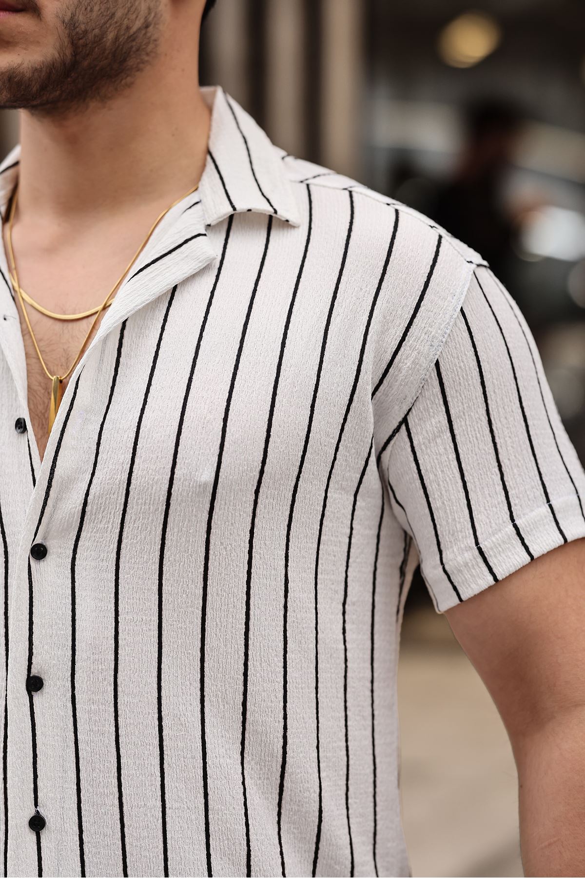 Erkek Kendinden Çizgi Desenli Gömlek BEYAZ