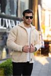 Erkek Kışlık Basic Fermuarlı Cepli Haki Polar Hırka