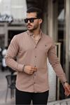 Erkek A Kalite Keten Slim Fit Uzun Kol Çift Kapaklı Gömlek PUDRA
