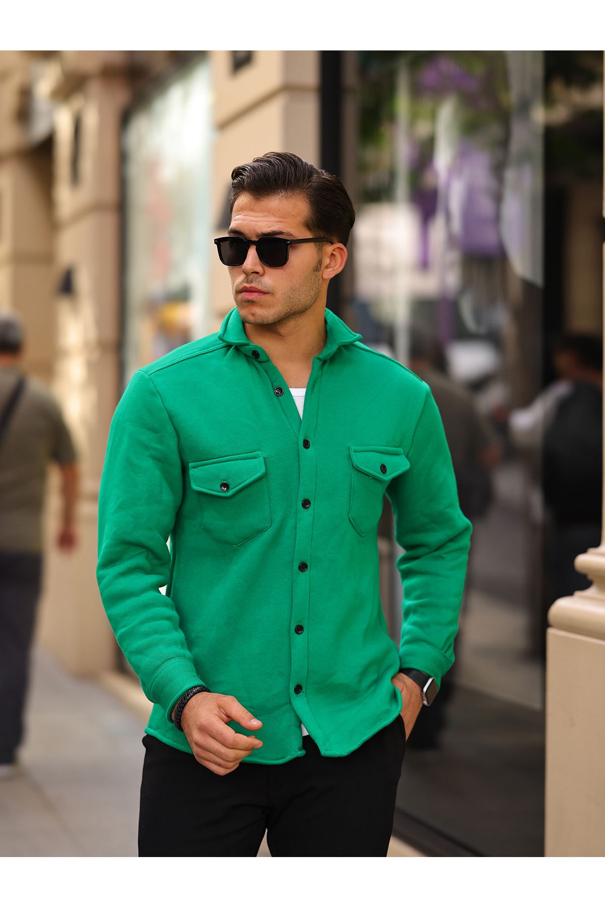 Erkek 3 İplik Rahat Kalıp Gömlek YEŞİL