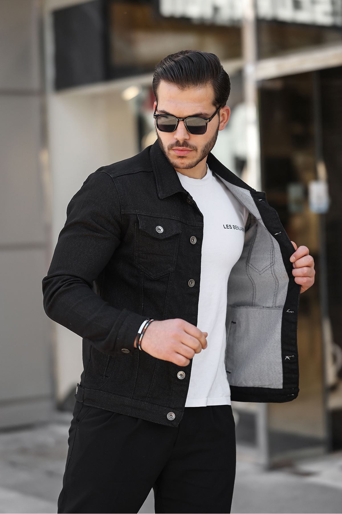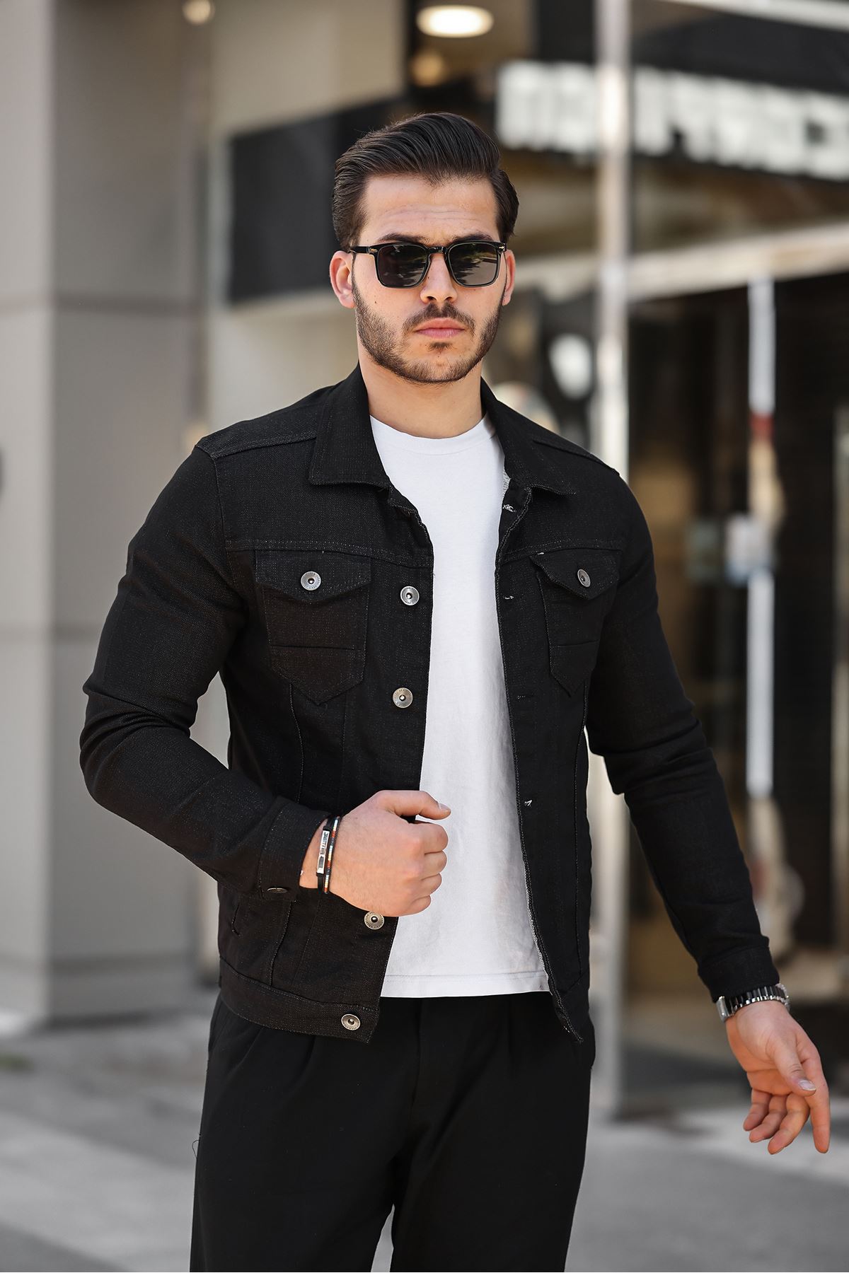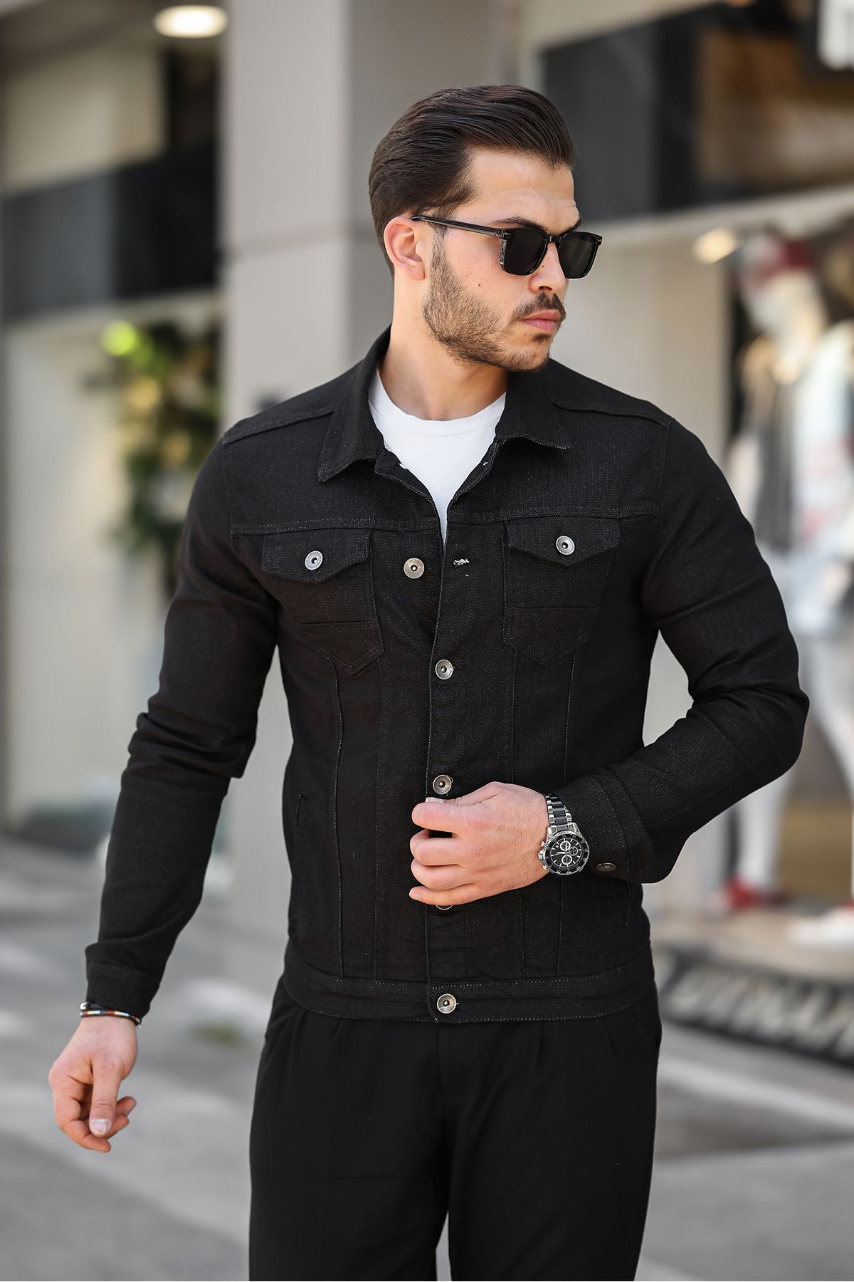 Erkek A Kalite Slim Fit Denim Kot Ceket SİYAH