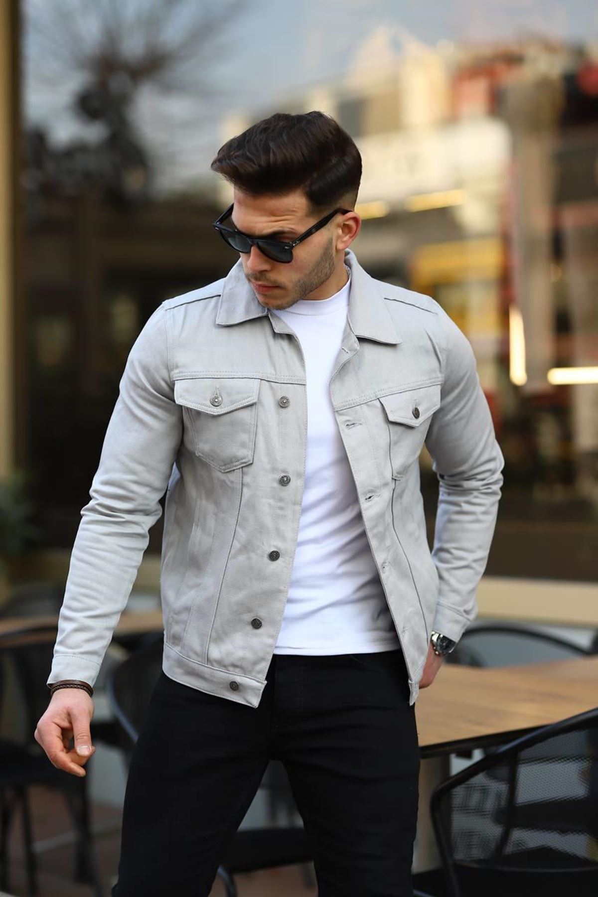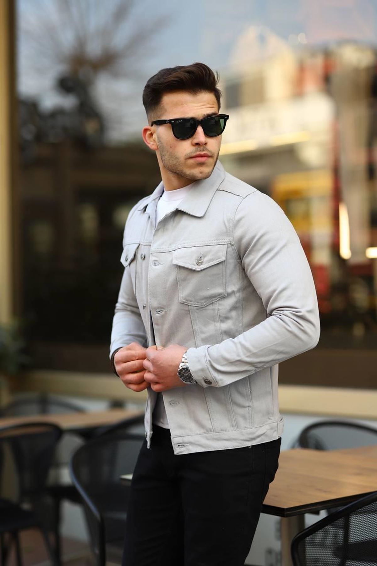 Erkek A Kalite Slim Fit Denim Kot Ceket A.GRİ