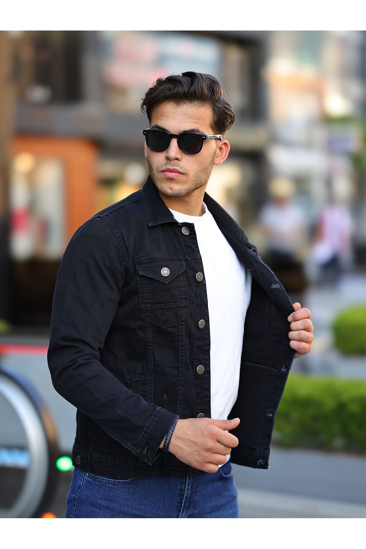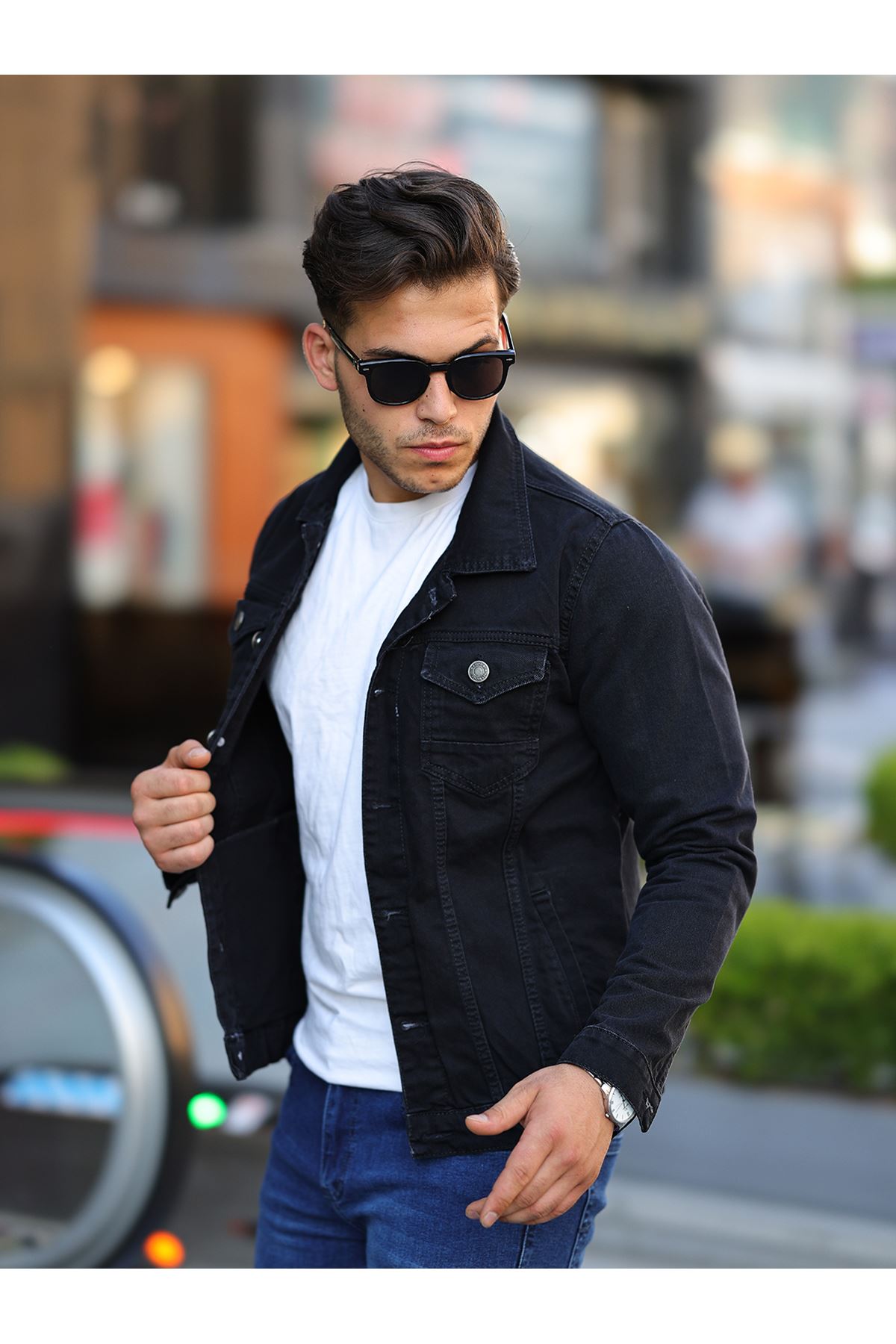 Erkek A Kalite Slim Fit Denim Kot Ceket A.SİYAH
