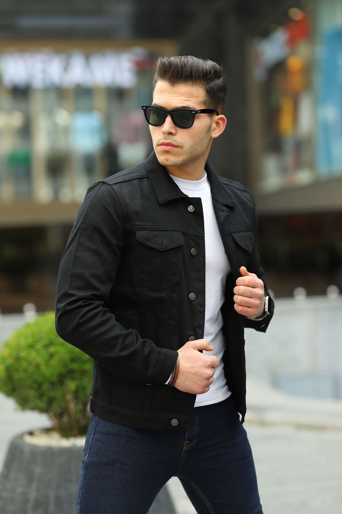 Erkek A Kalite Slim Fit Denim Kot Ceket SİYAH