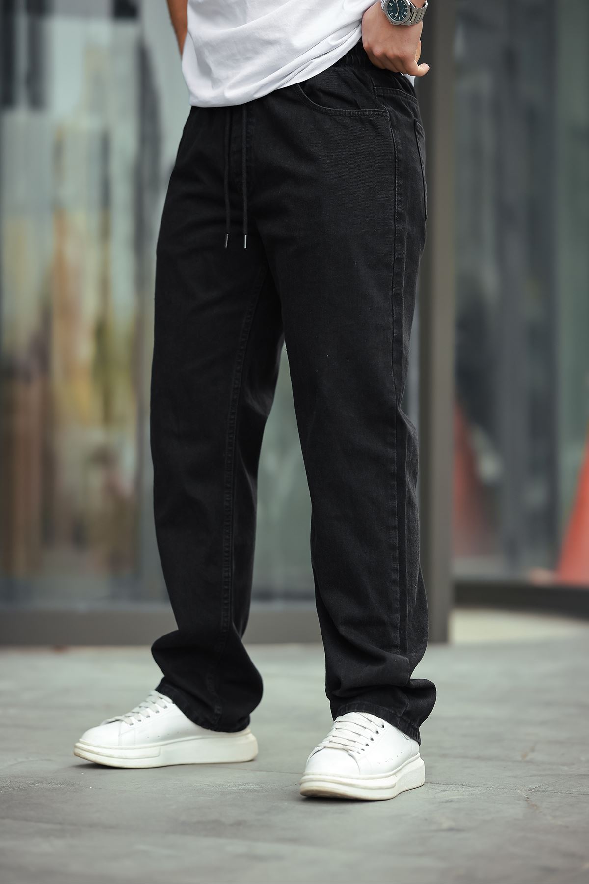 Erkek Baggy Rahat Kalıp Bel Lastikli Pantolon SİYAH