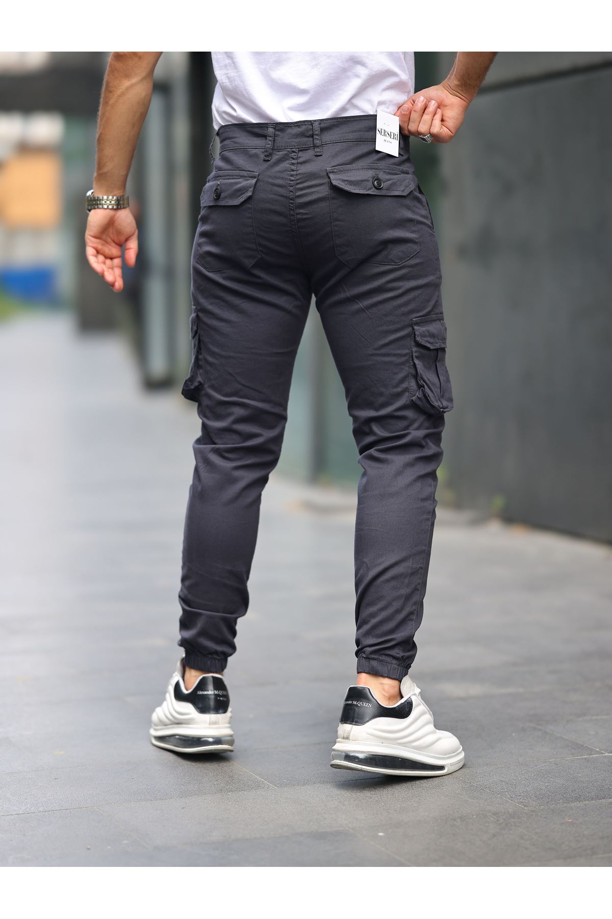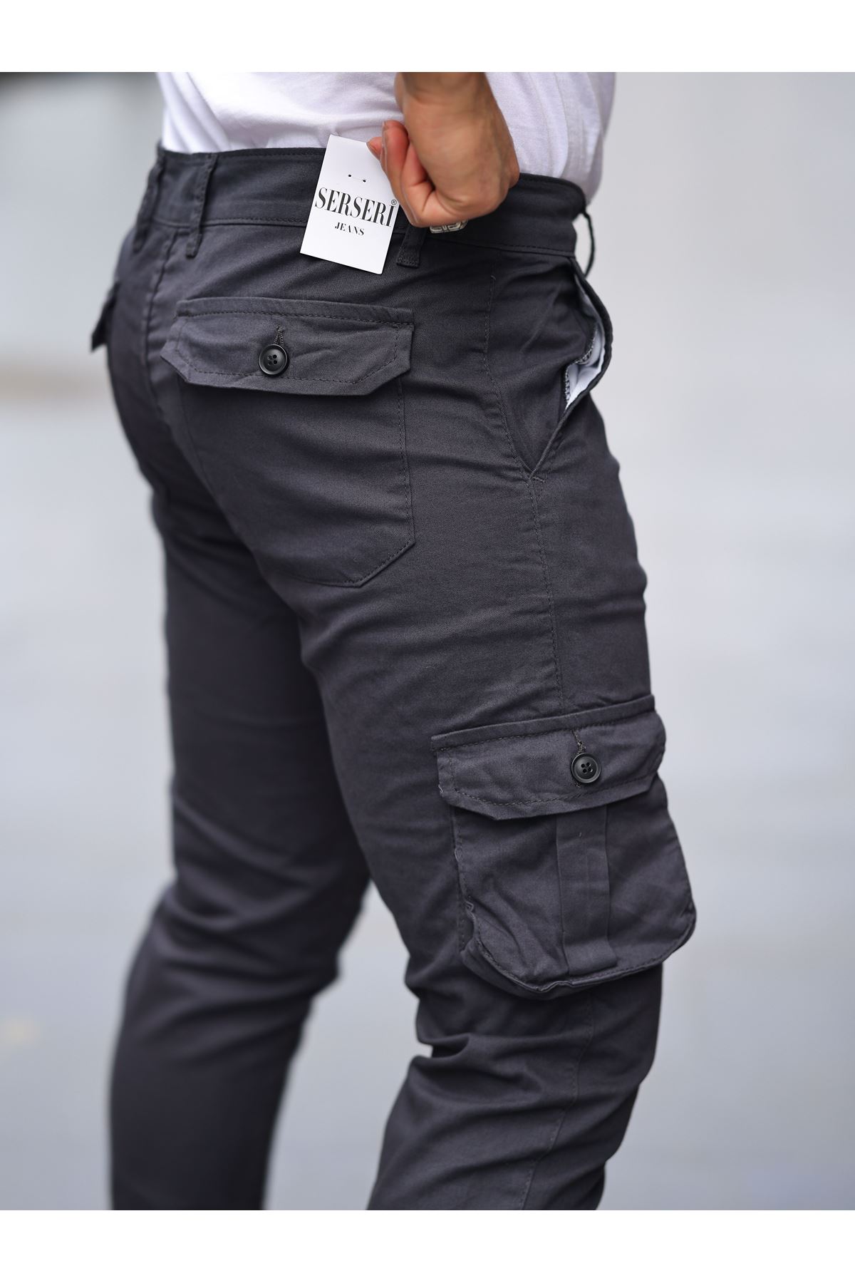 ERKEK BEL KEMERLİ KÖRÜKLÜ JOGGER PAÇA LASTİKLİ PANTOLON Antrasit