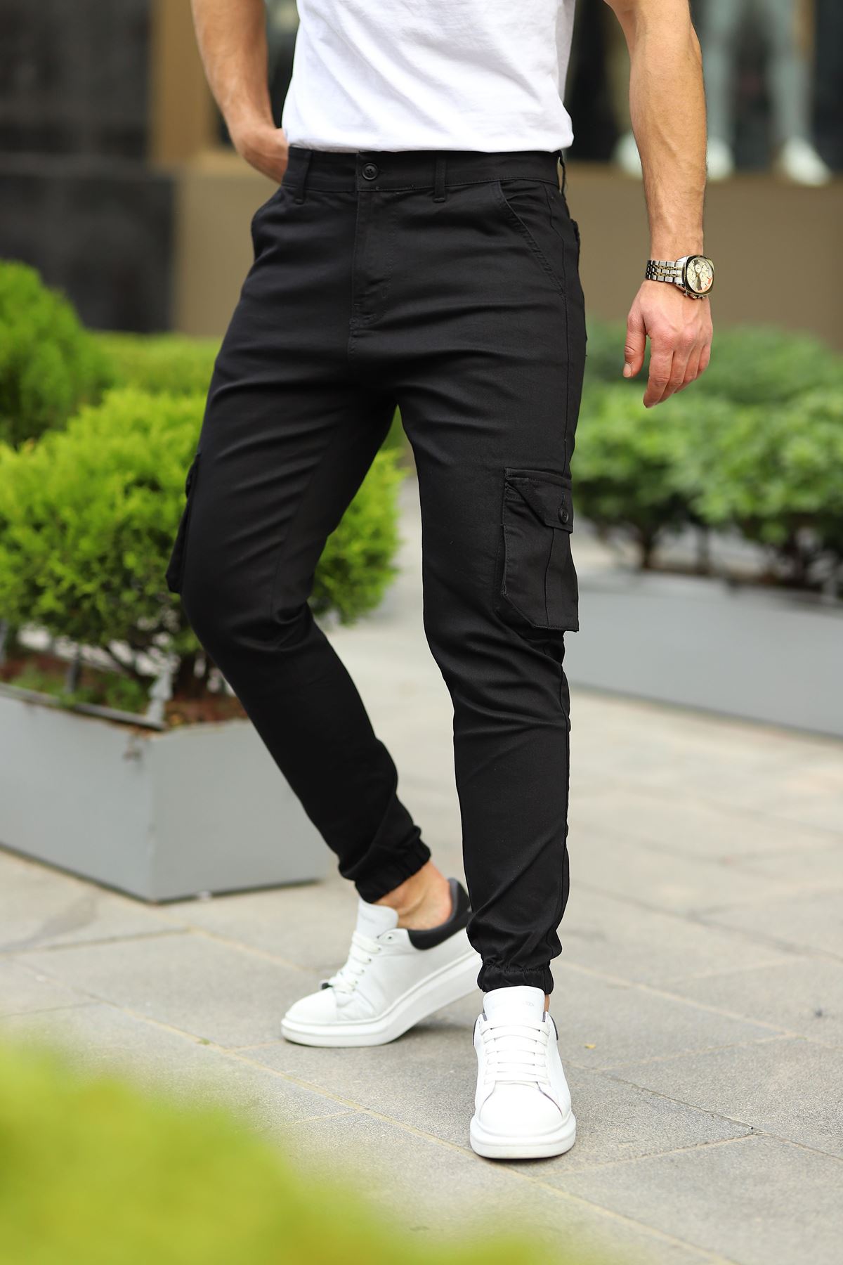 ERKEK BEL KEMERLİ KÖRÜKLÜ JOGGER PAÇA LASTİKLİ PANTOLON SİYAH