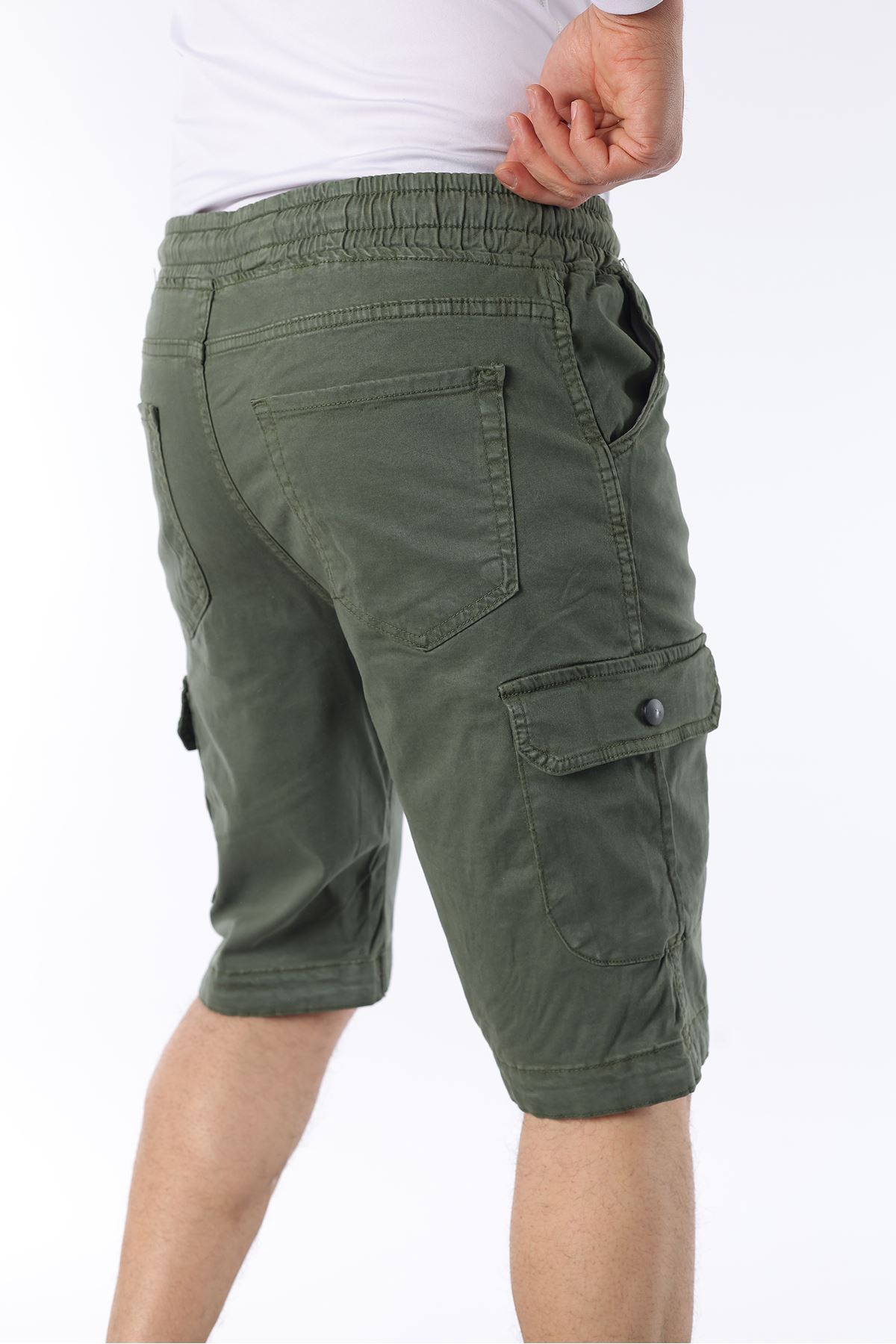 Erkek Beli Lastikli Dikiş Detaylı Kargo Cep Kapri Şort HAKİ