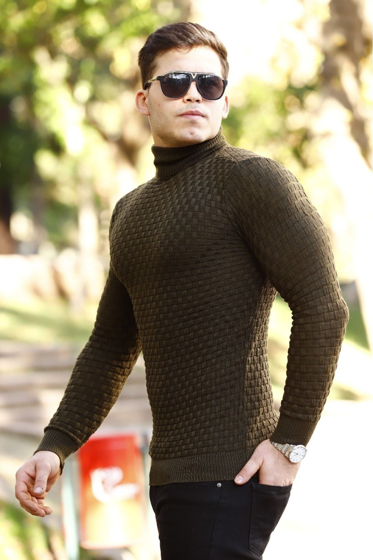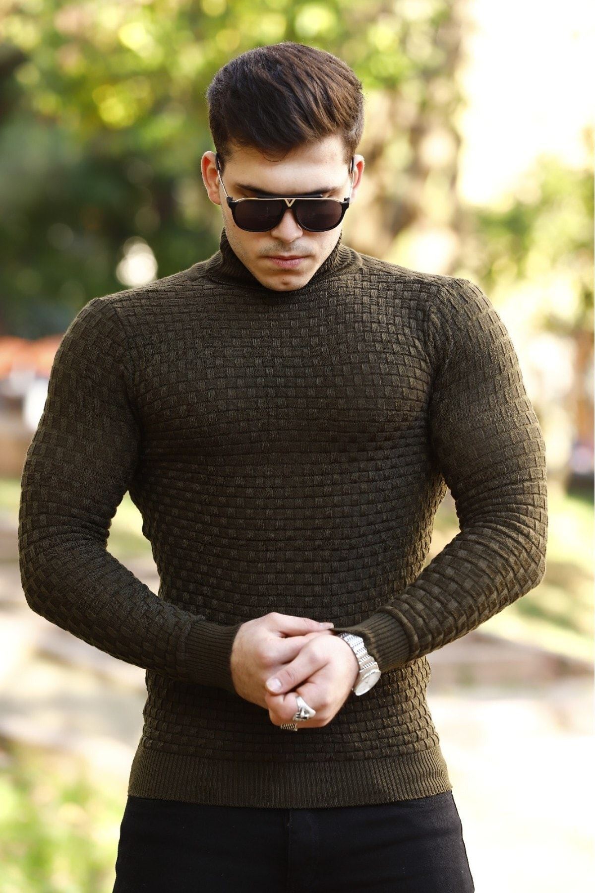 Erkek Boğazlı Triko Kazak HAKİ