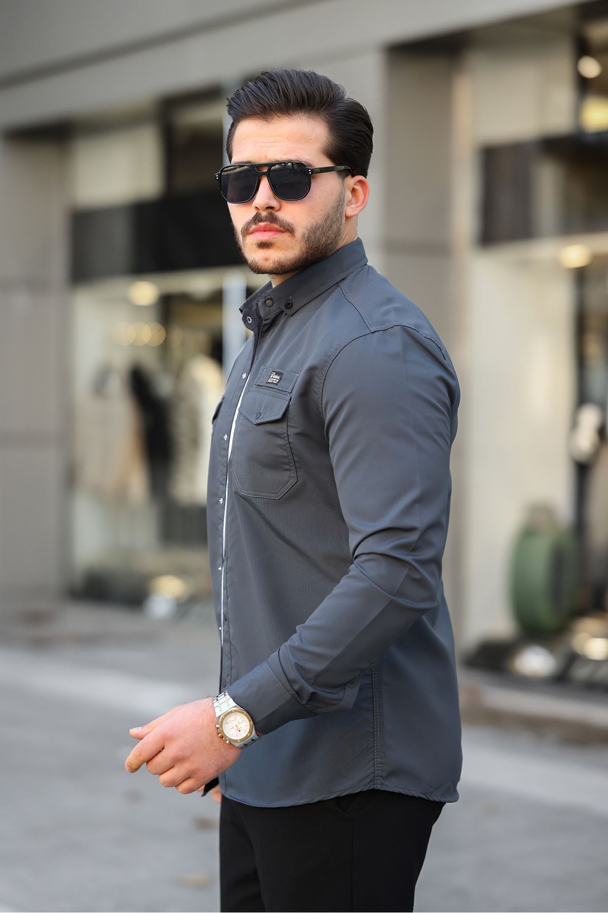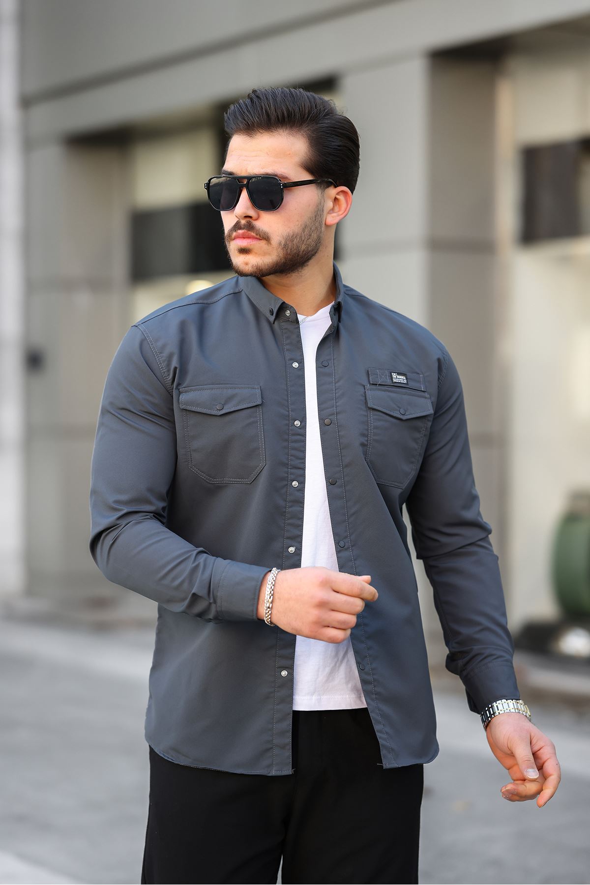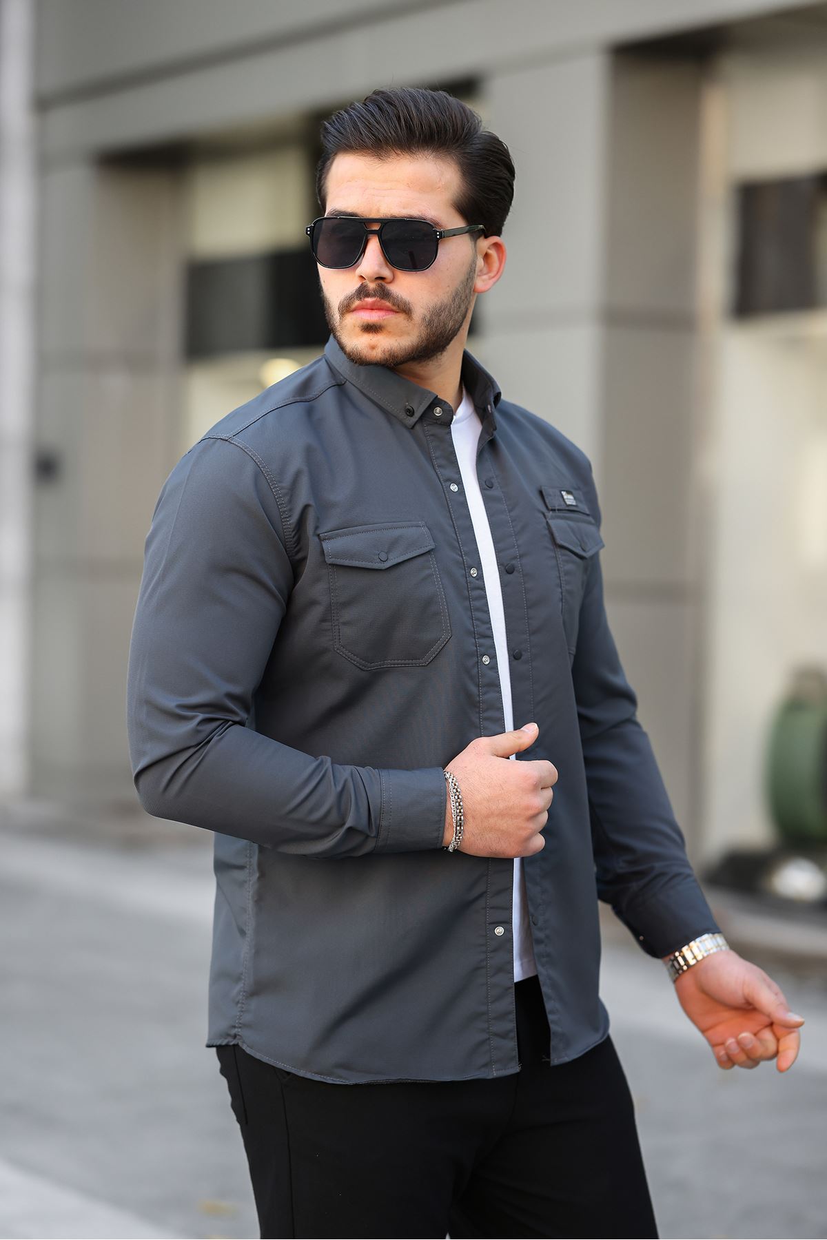 Erkek Çift Cep Paraşüt Kumaş Gömlek Antrasit