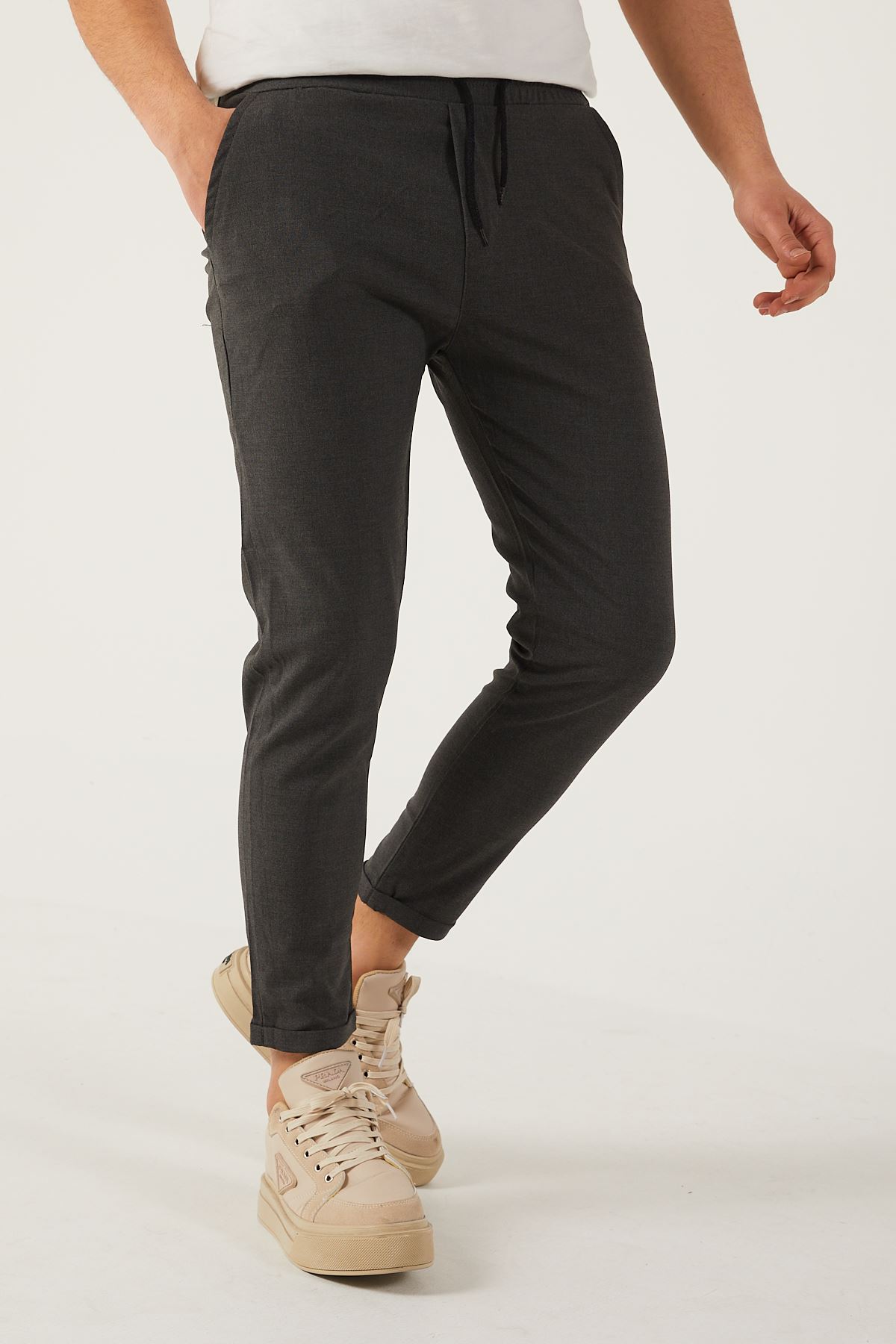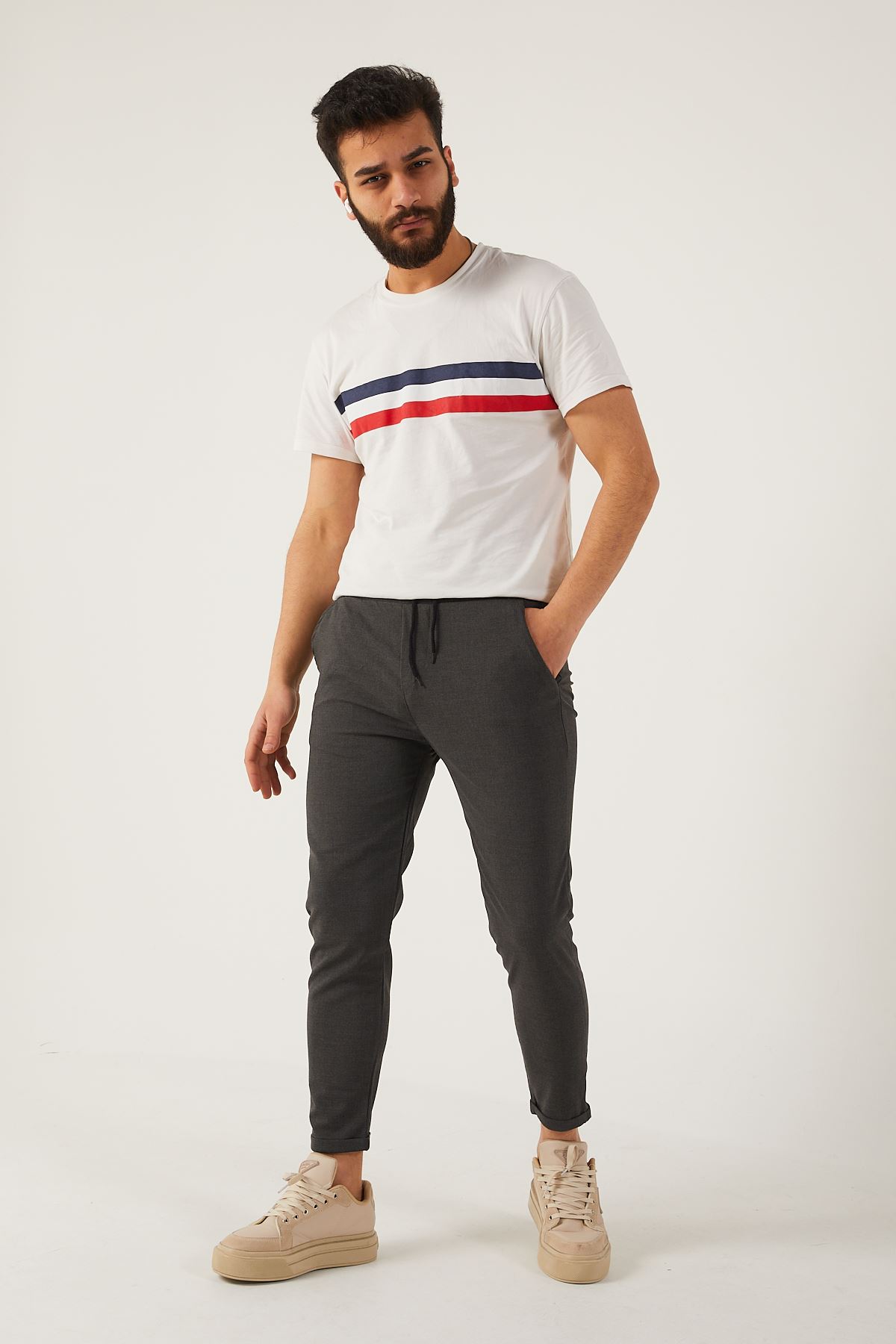 Erkek Dar Kalıp Duble Paça Jogger Pantolon FÜME