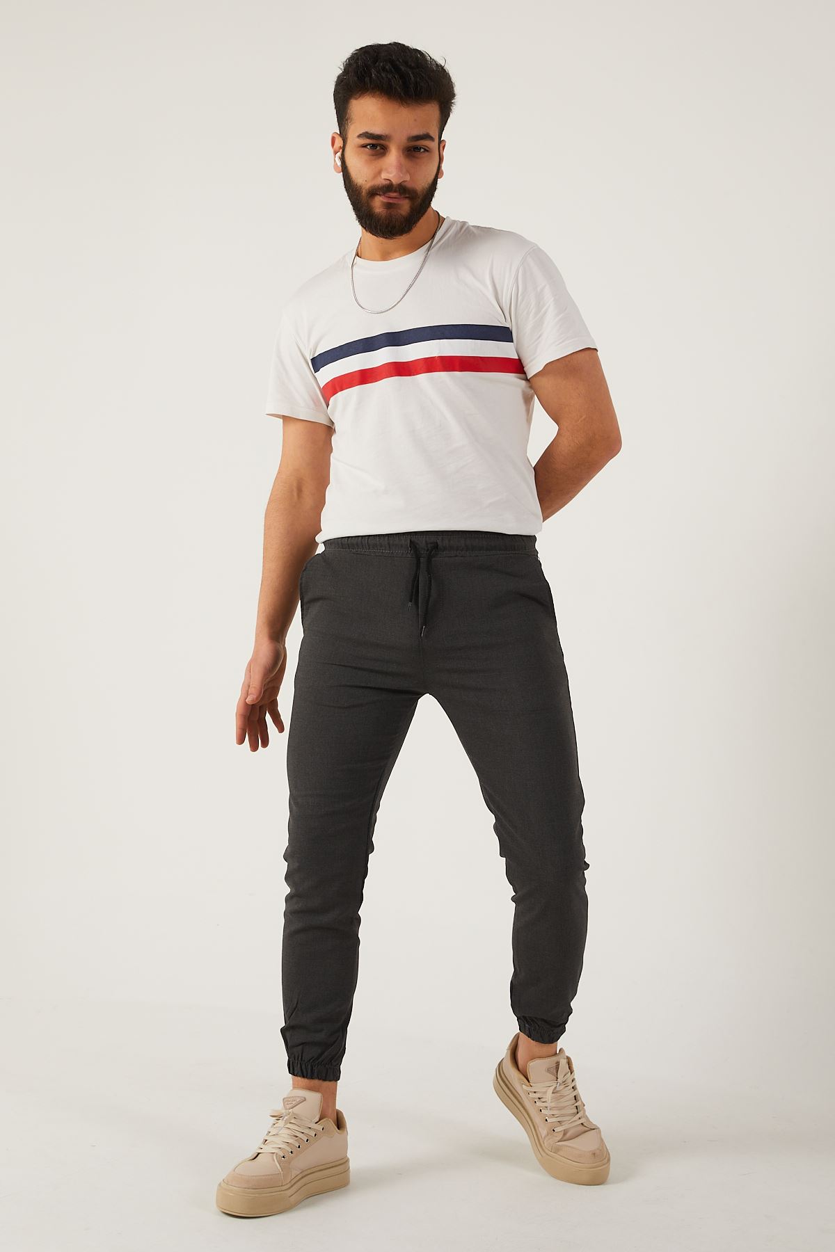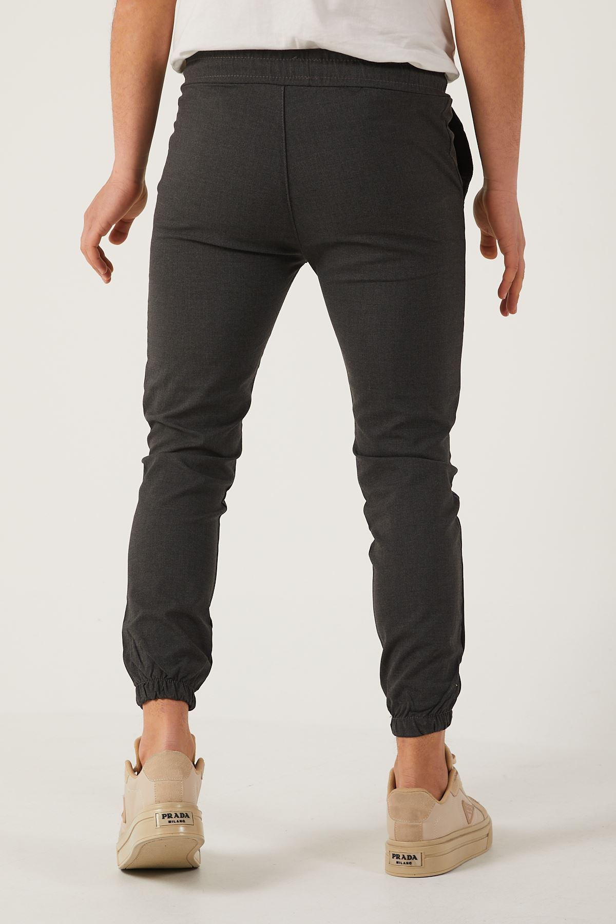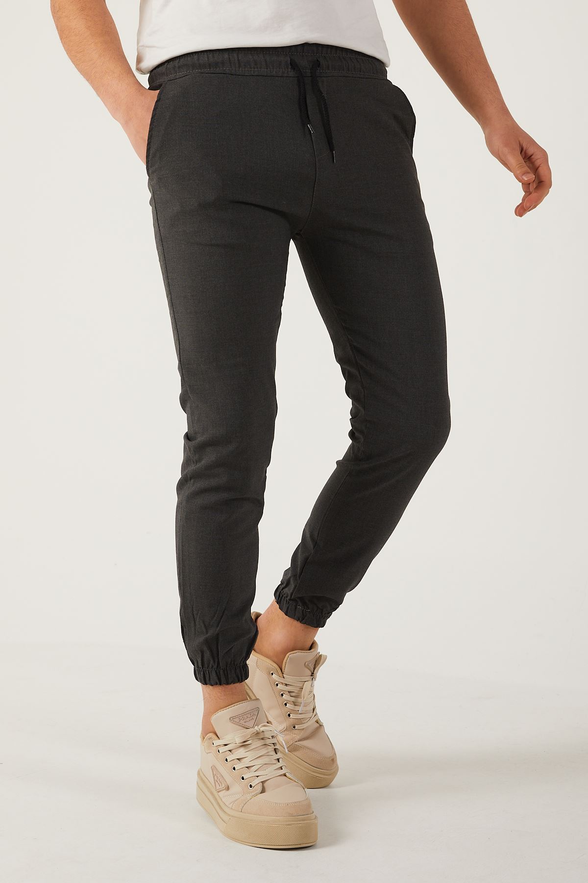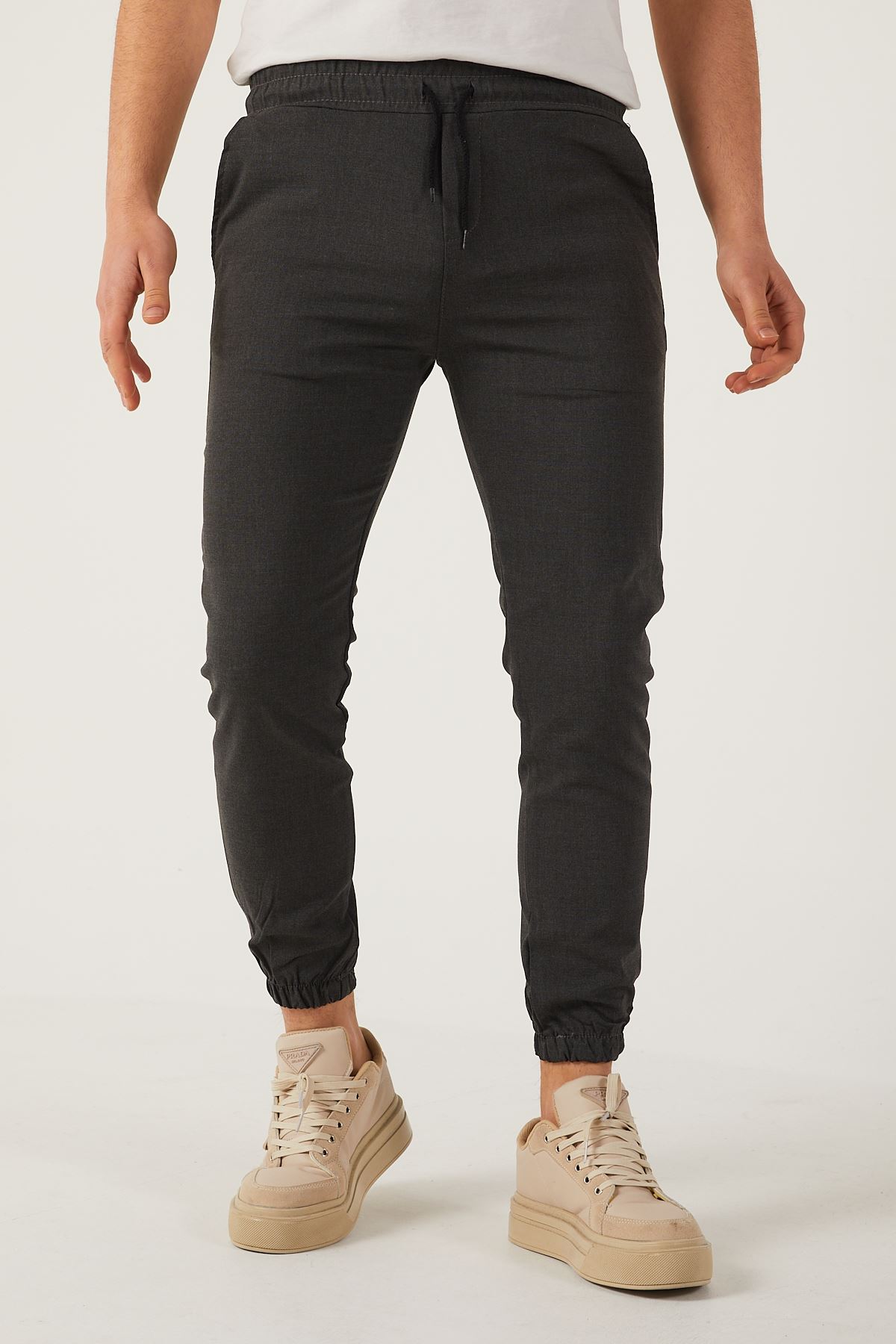 Erkek Dar Kalıp Lastikli Paça Jogger Pantolon FÜME