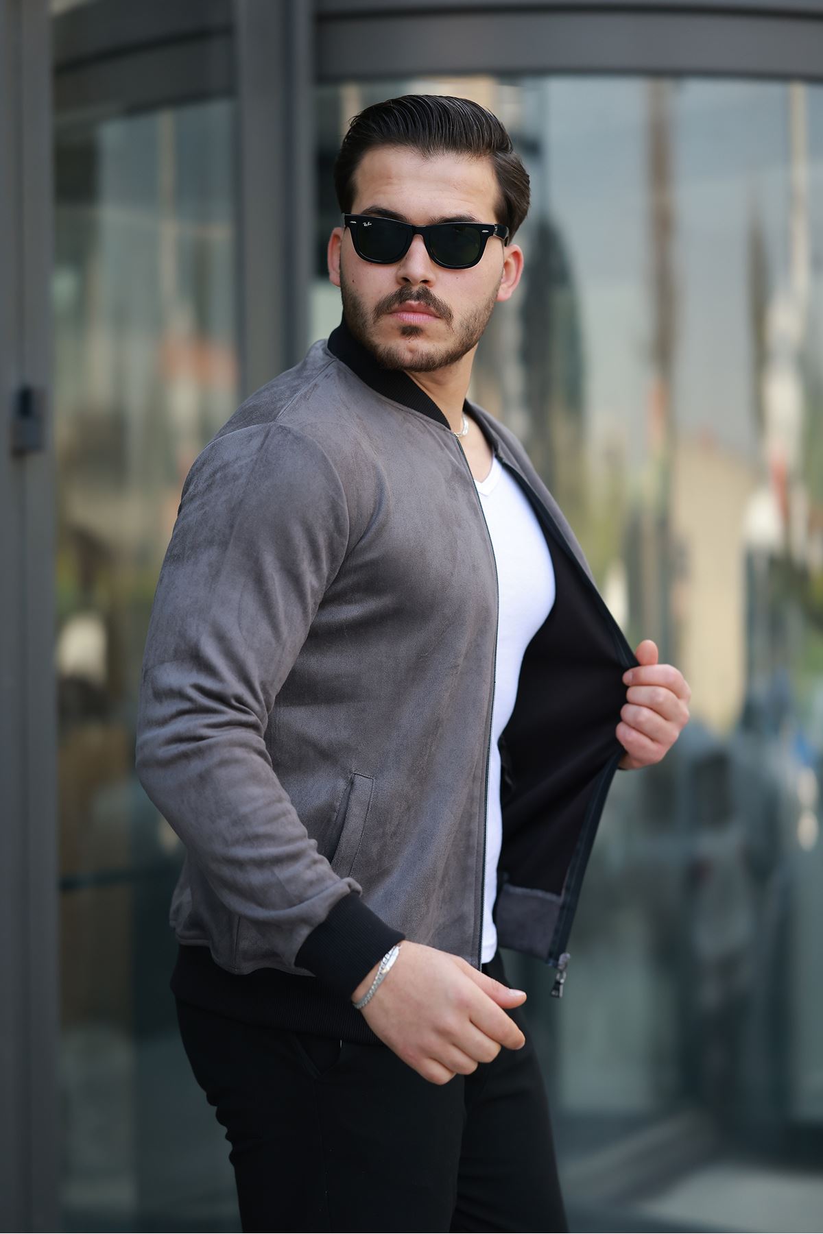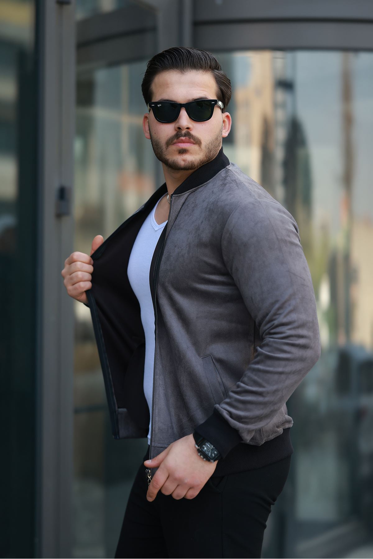 Erkek Dar Kesim Nubuk Süet Astarsız Likralı Su Itici Kolej Ceket FÜME