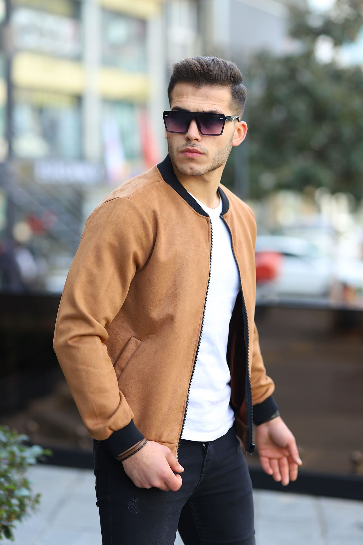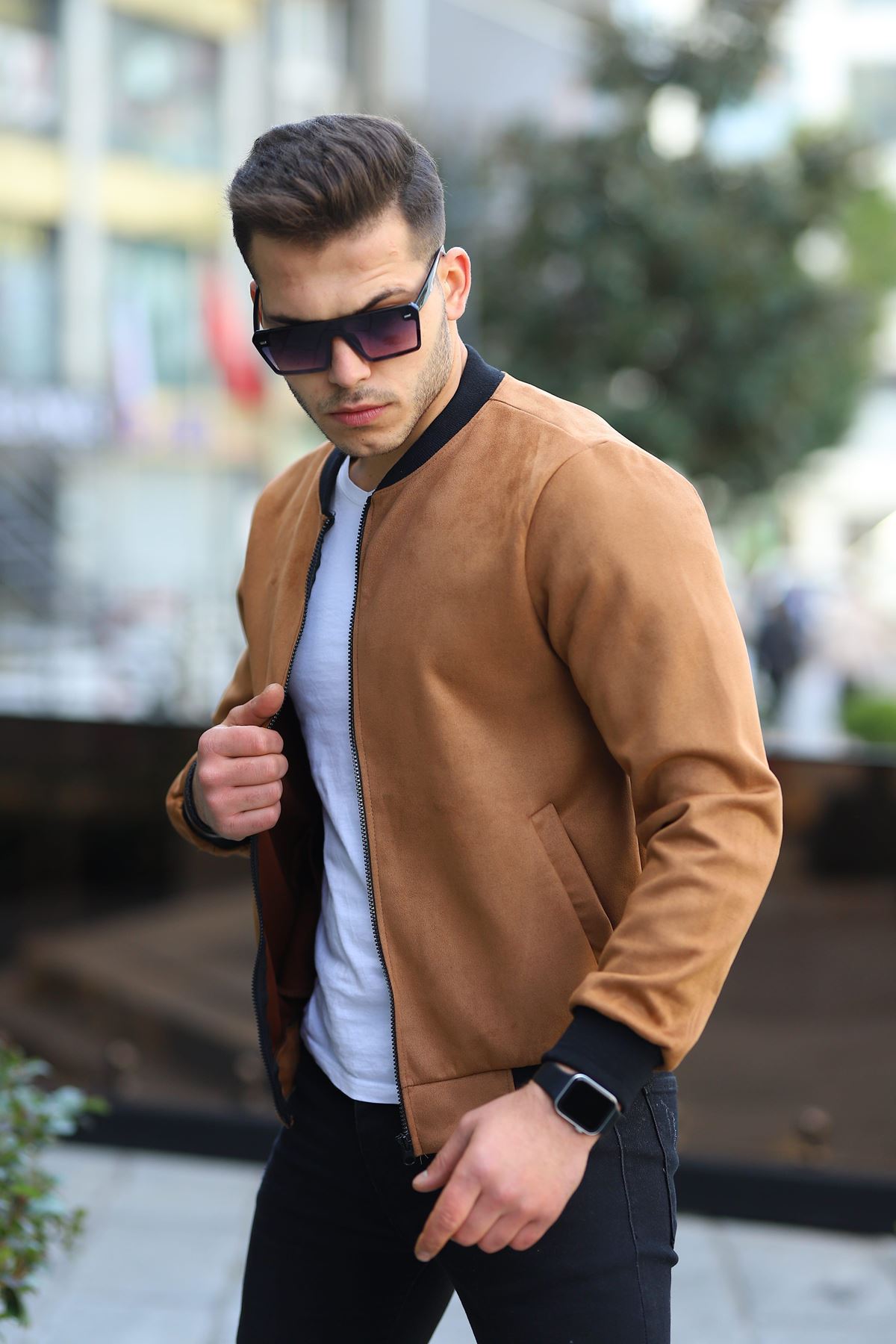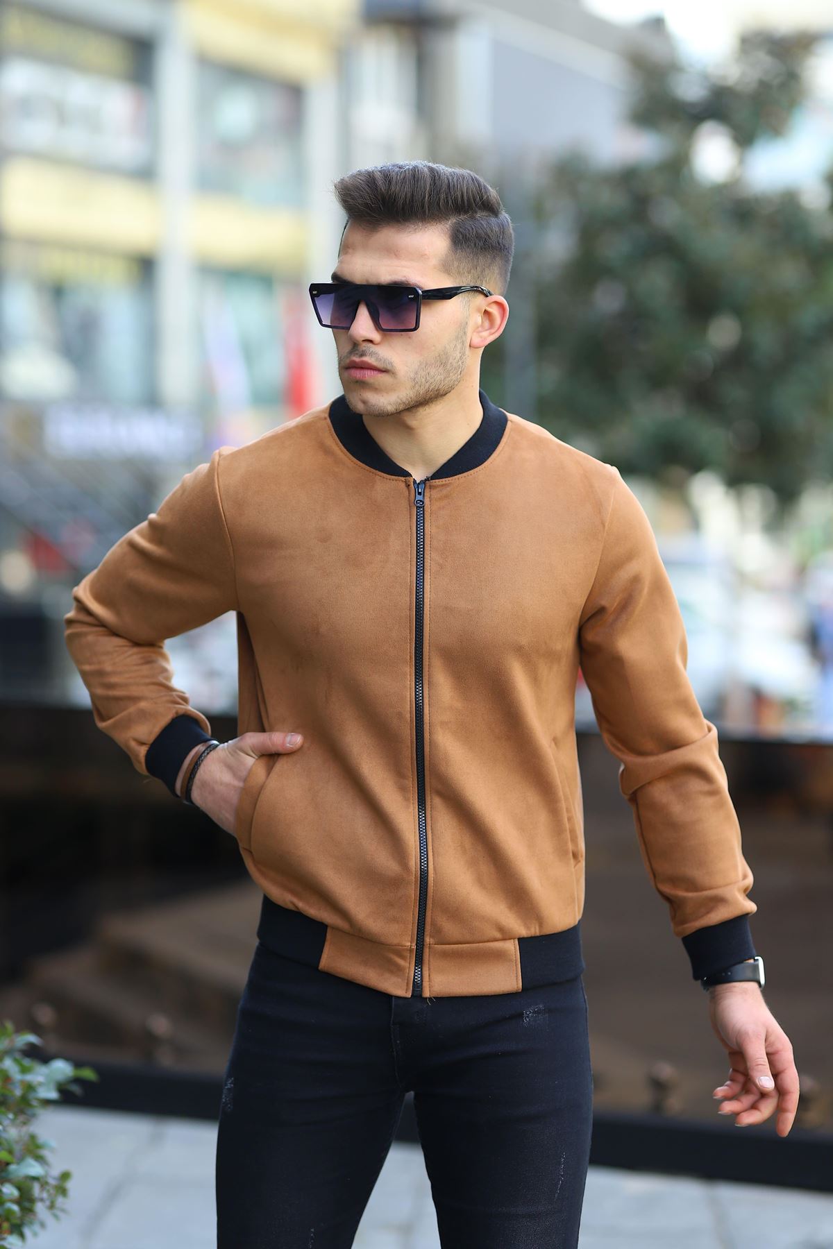 Erkek Dar Kesim Nubuk Süet Astarsız Likralı Su Itici Kolej Ceket