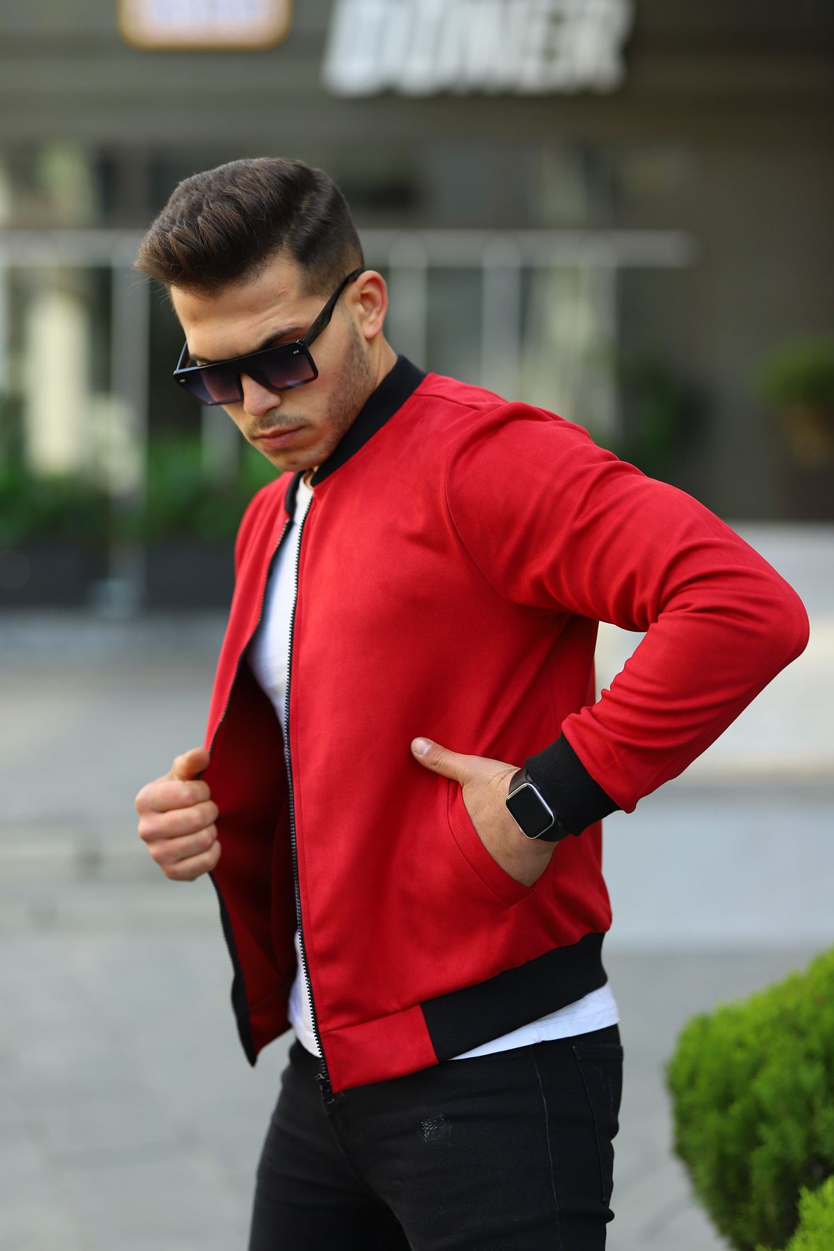 Erkek Dar Kesim Nubuk Süet Astarsız Likralı Su Itici Kolej Ceket KIRMIZI