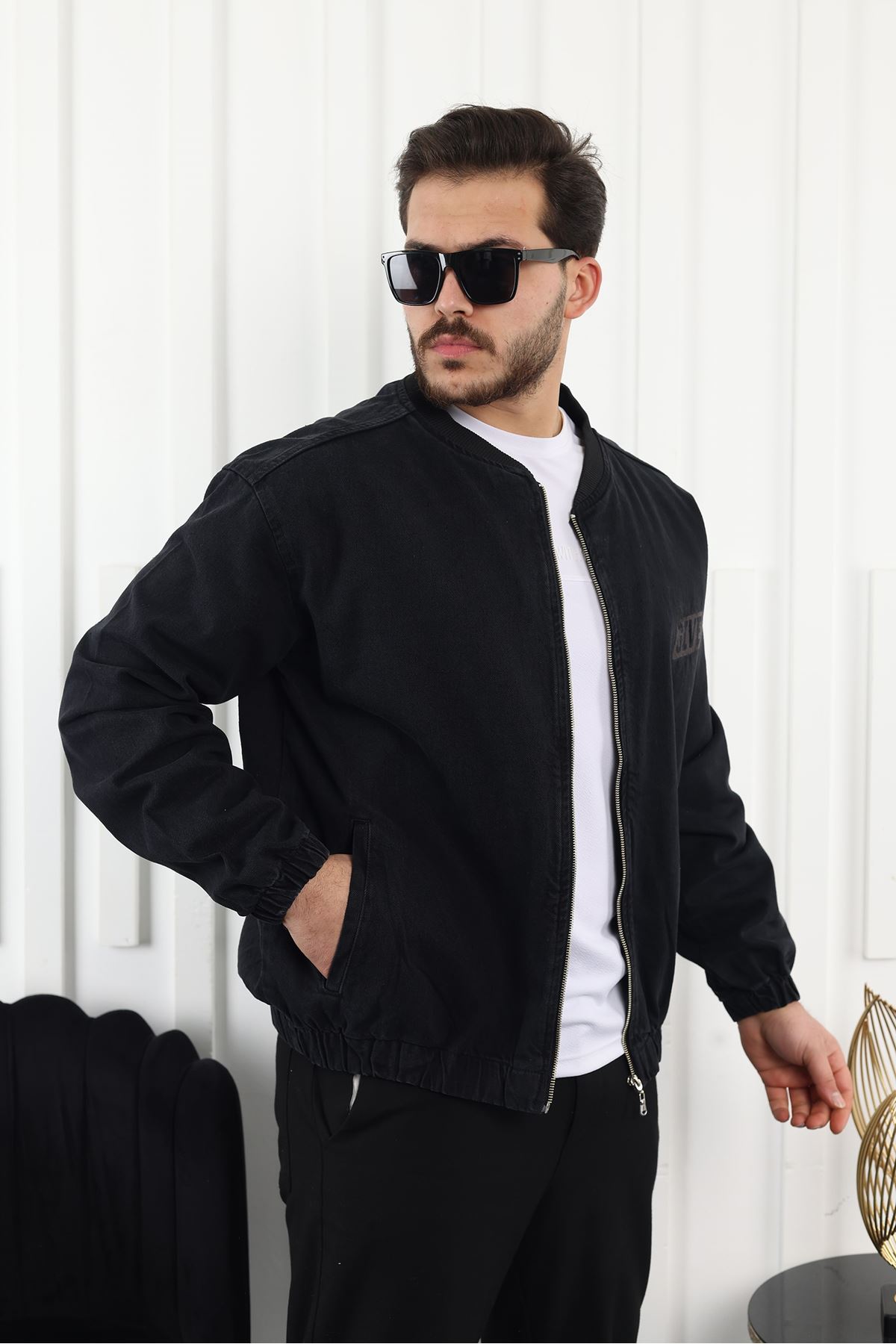 Erkek Fermuarlı Bomber Kot Ceket SİYAH