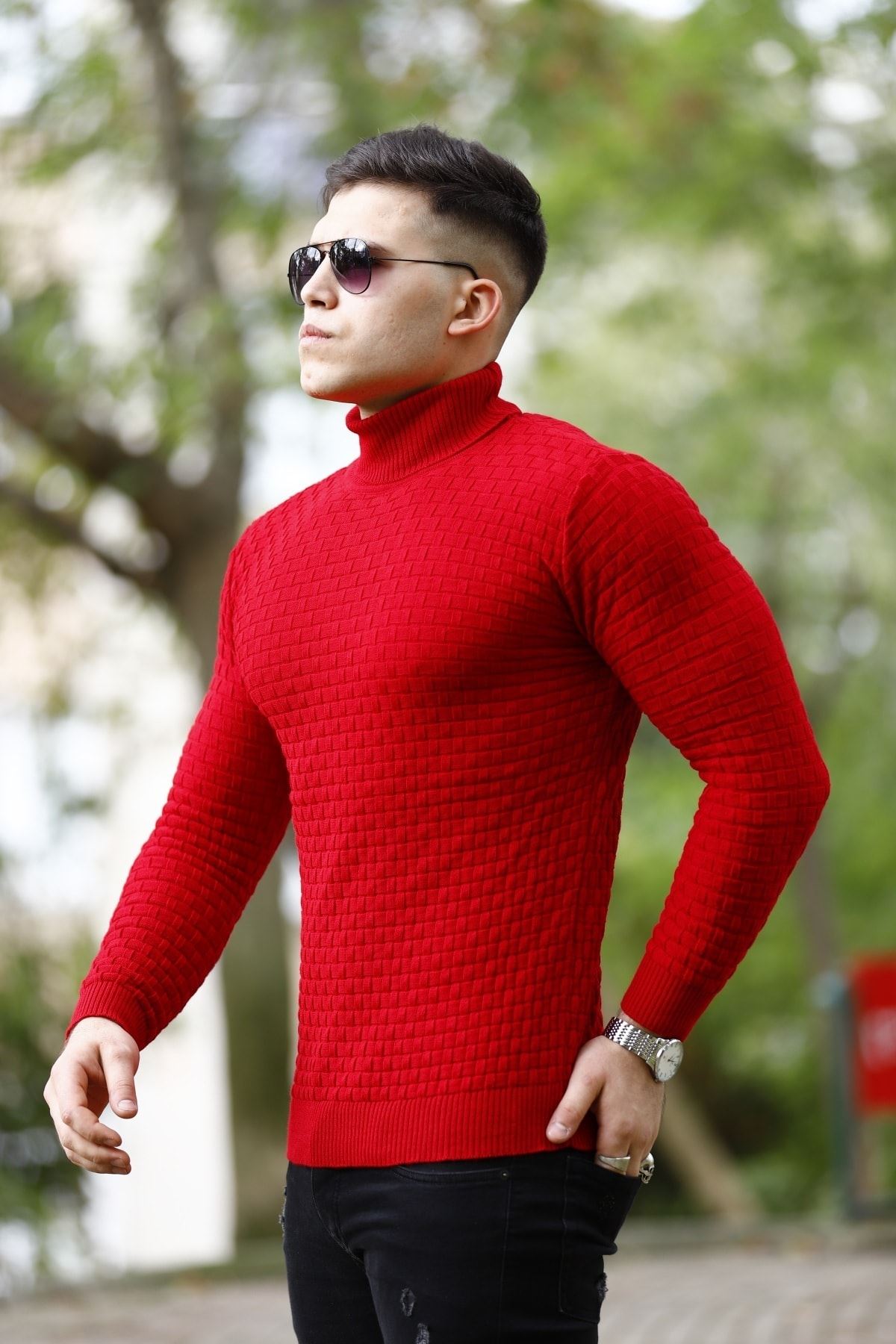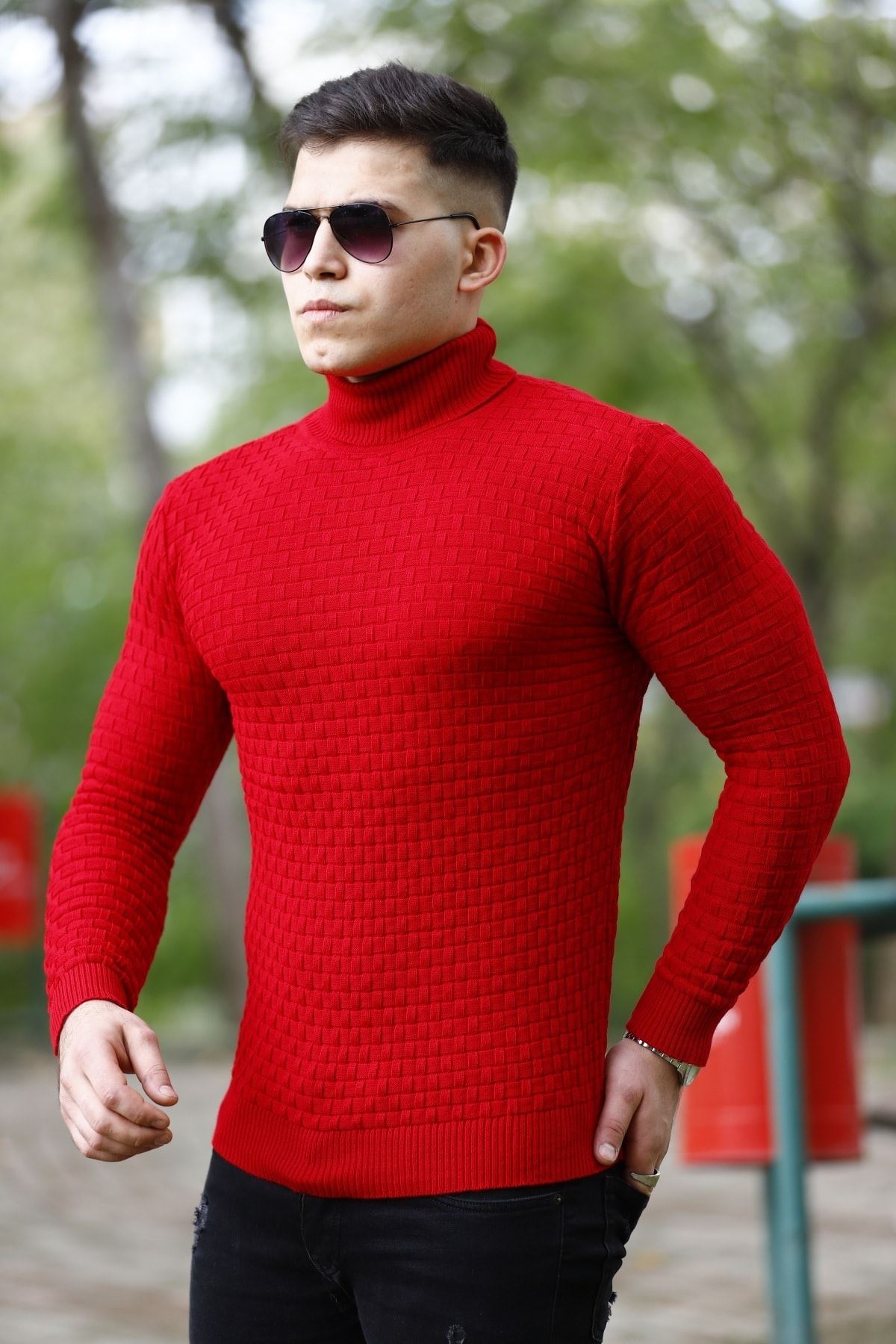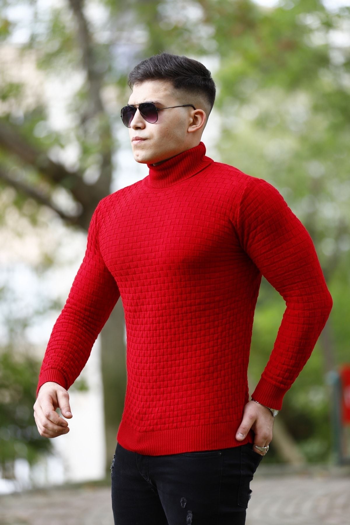 Erkek Tam Balıkçı Yaka Triko Kazak KIRMIZI