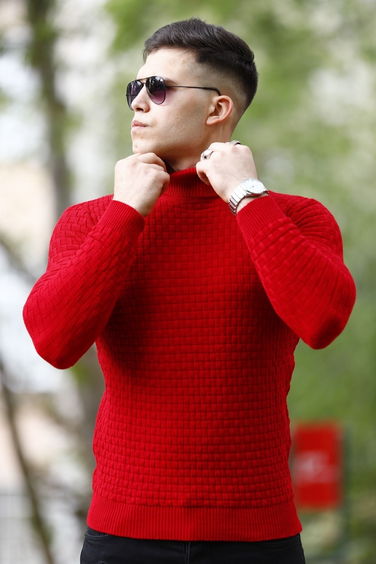 Erkek Boğazlı Triko Kazak Scarlet