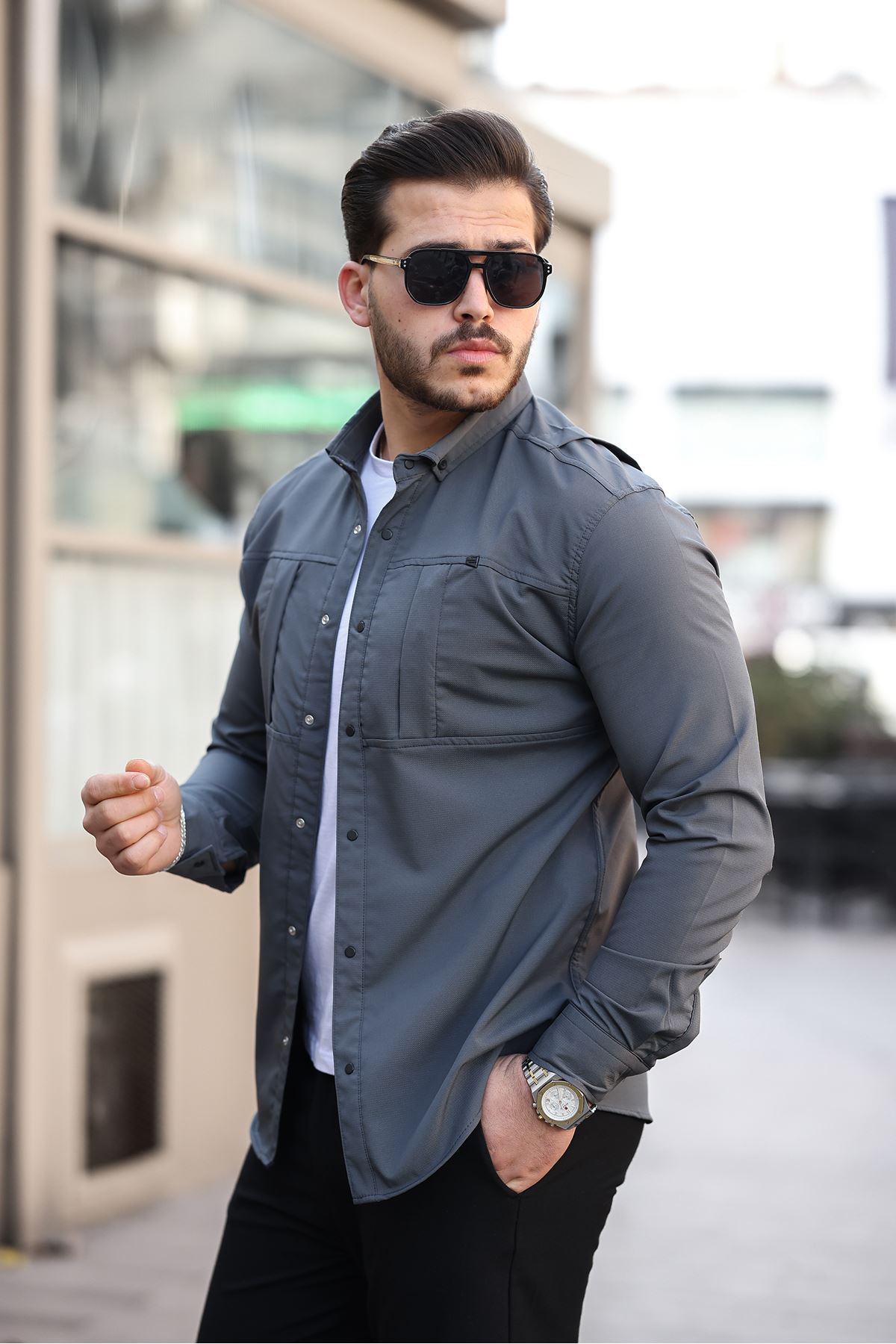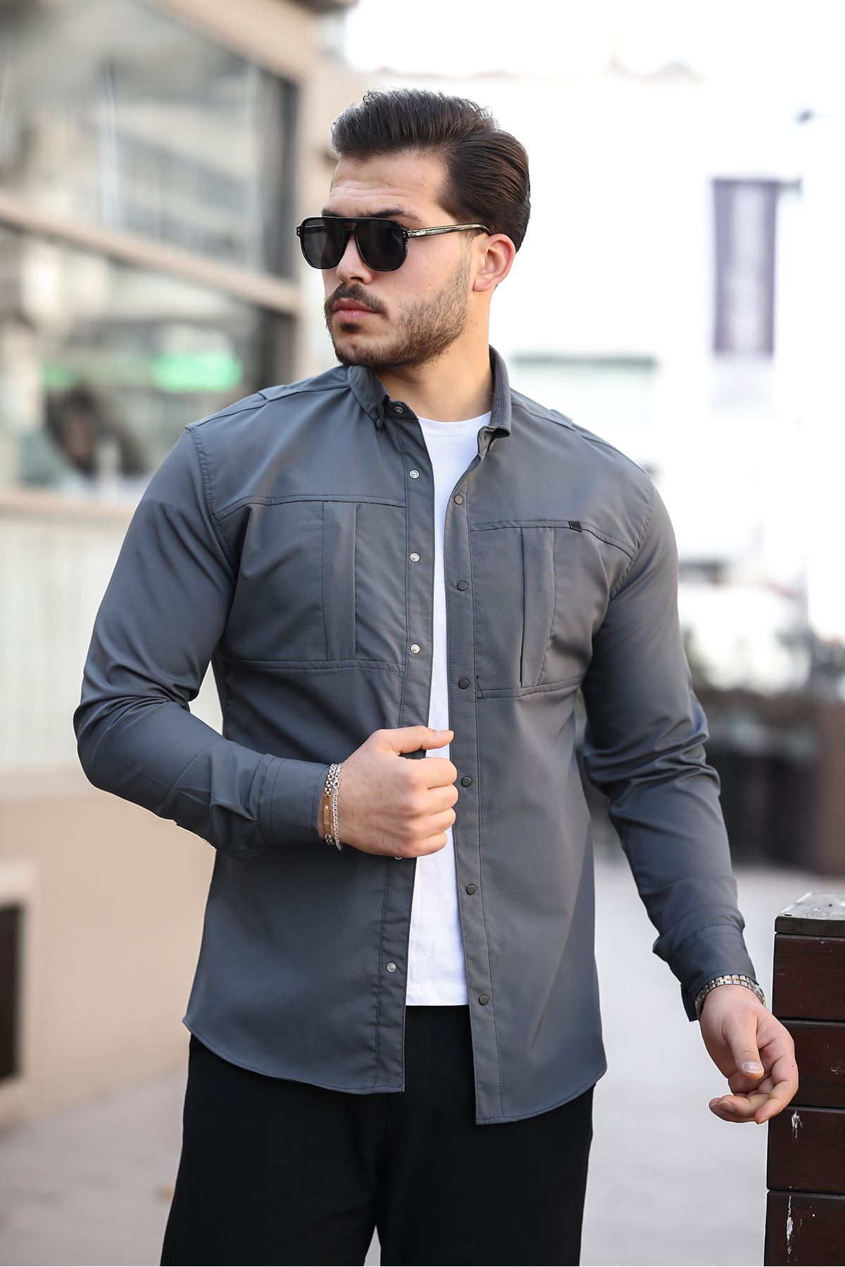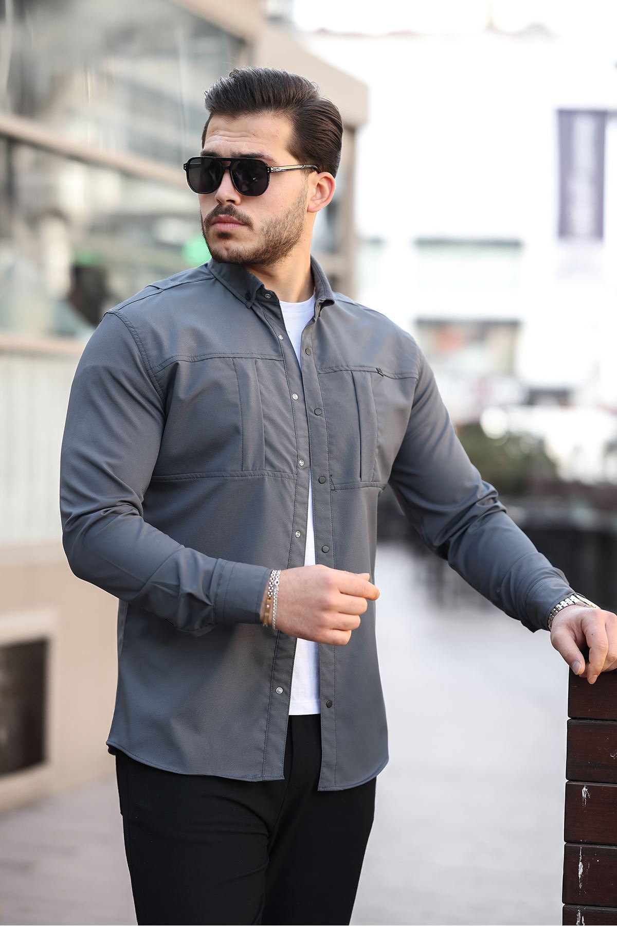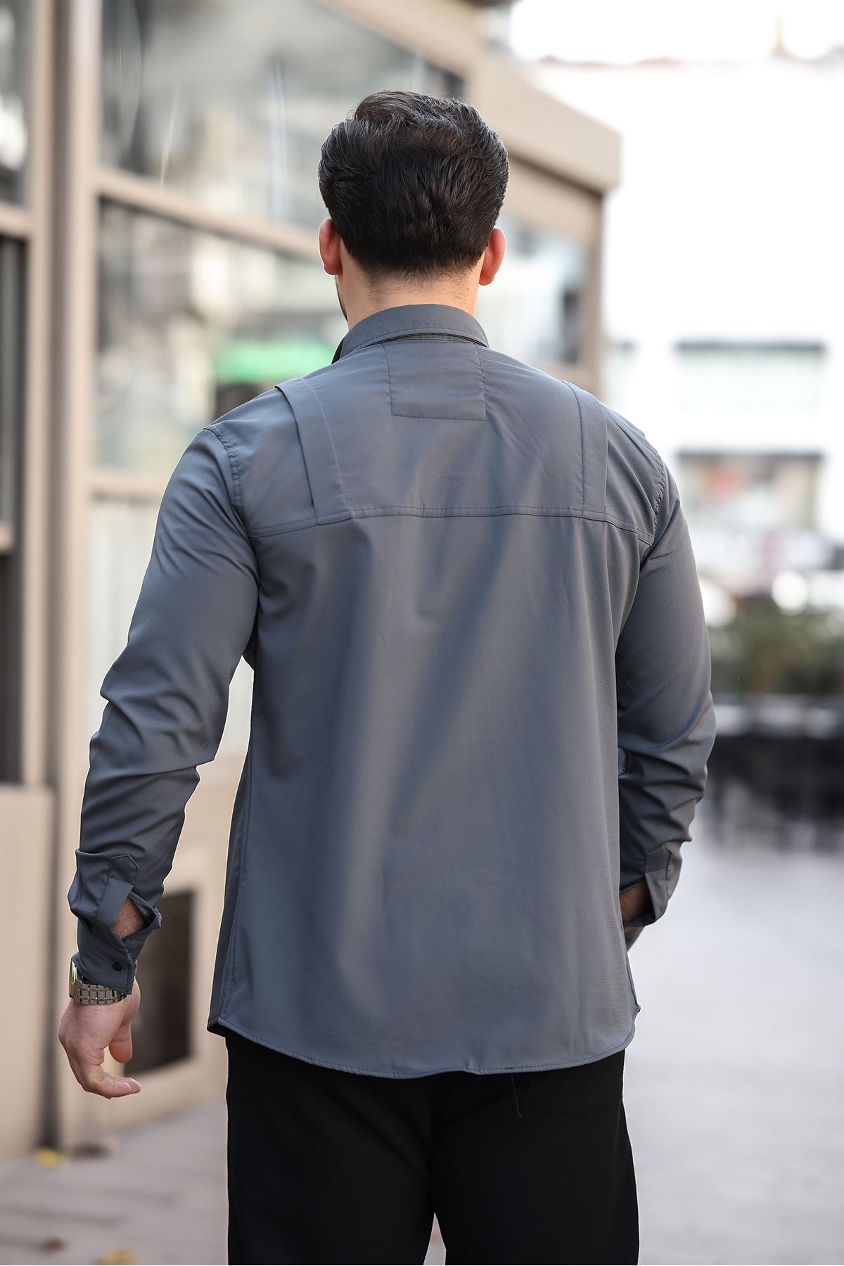 Erkek Gizli Cep Paraşüt Kumaş Gömlek K.GRİ