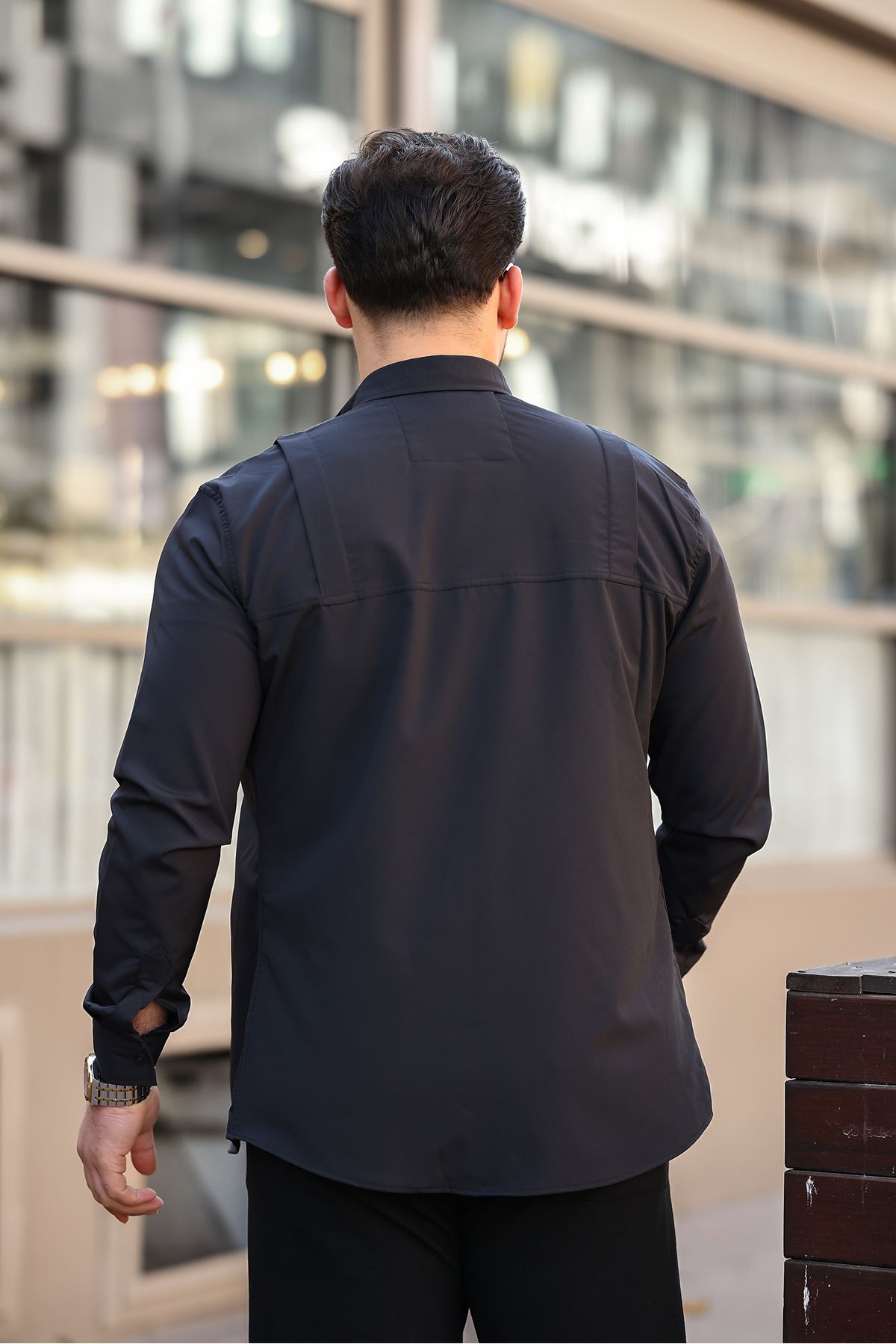 Erkek Gizli Cep Paraşüt Kumaş Gömlek SİYAH