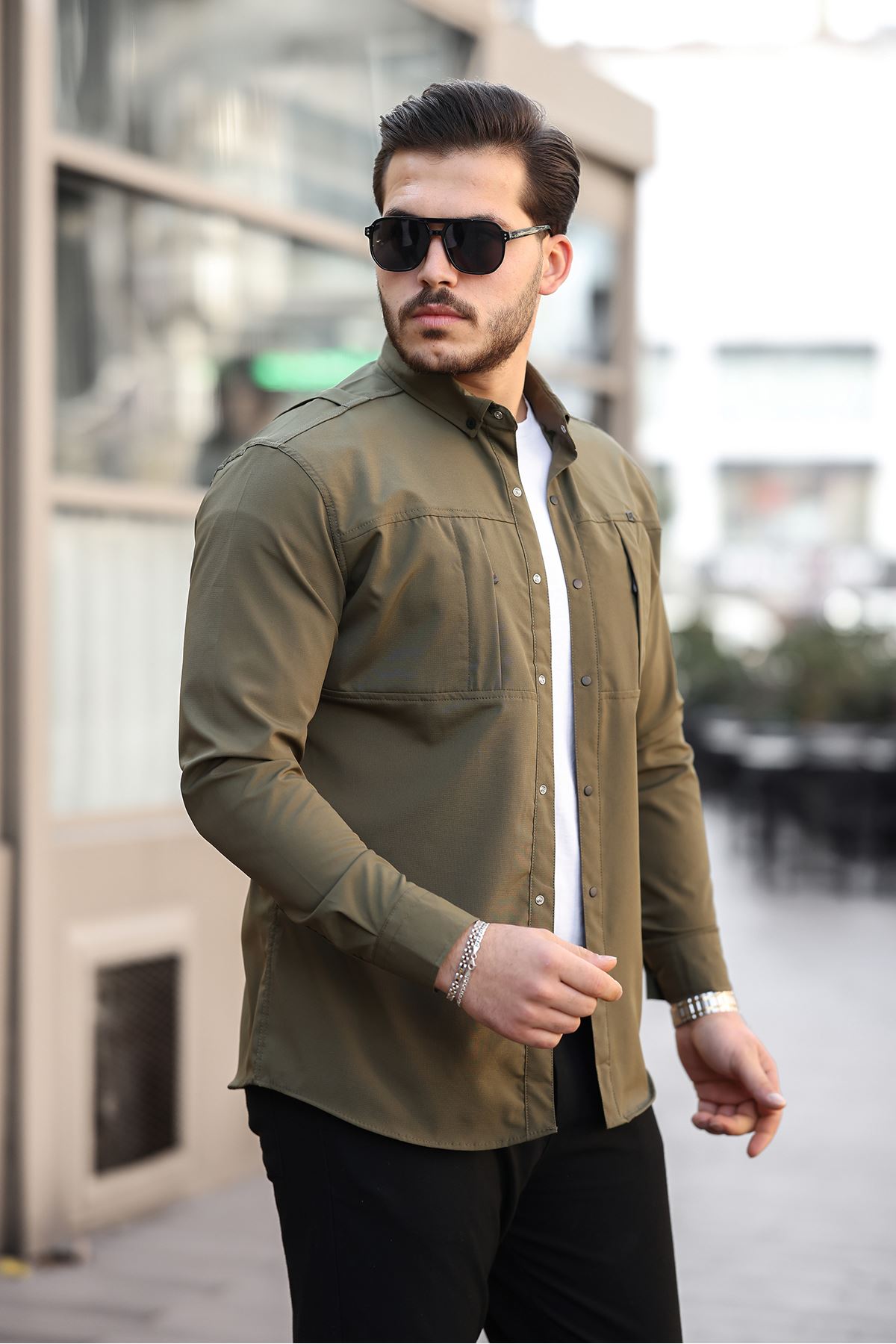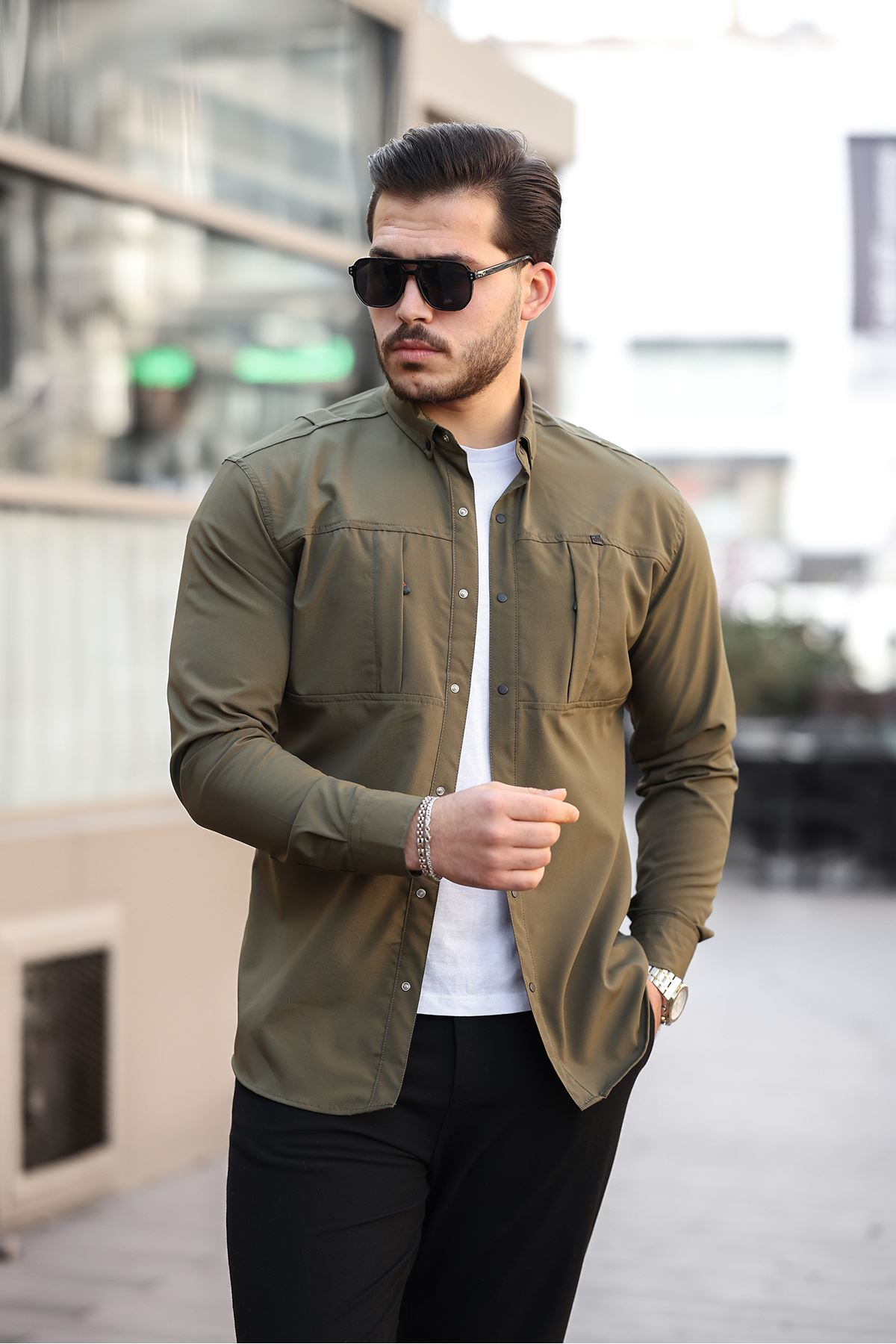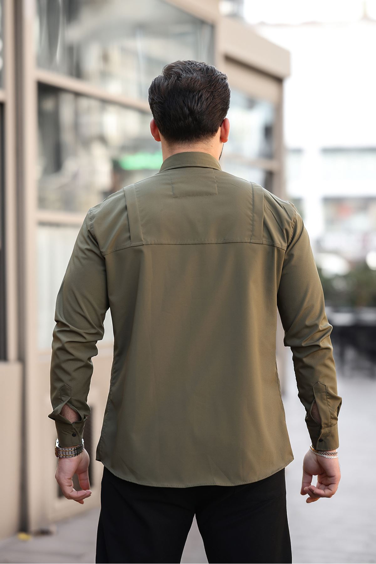 Erkek Gizli Cep Paraşüt Kumaş Gömlek YEŞİL