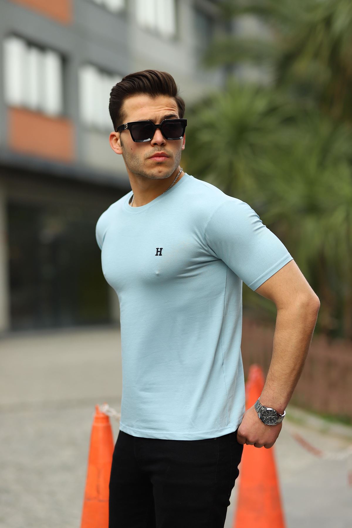 Erkek H Nakış Desenli Oversize Tshirt BEBE MAVİ