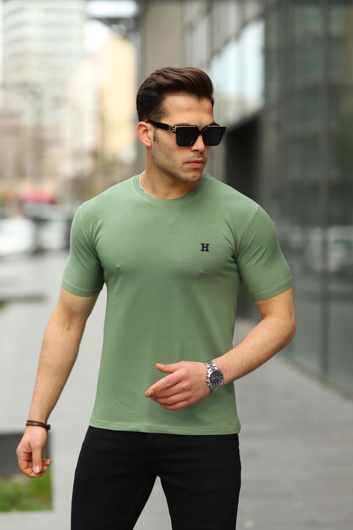 Erkek H Nakış Desenli Oversize Tshirt HAKİ
