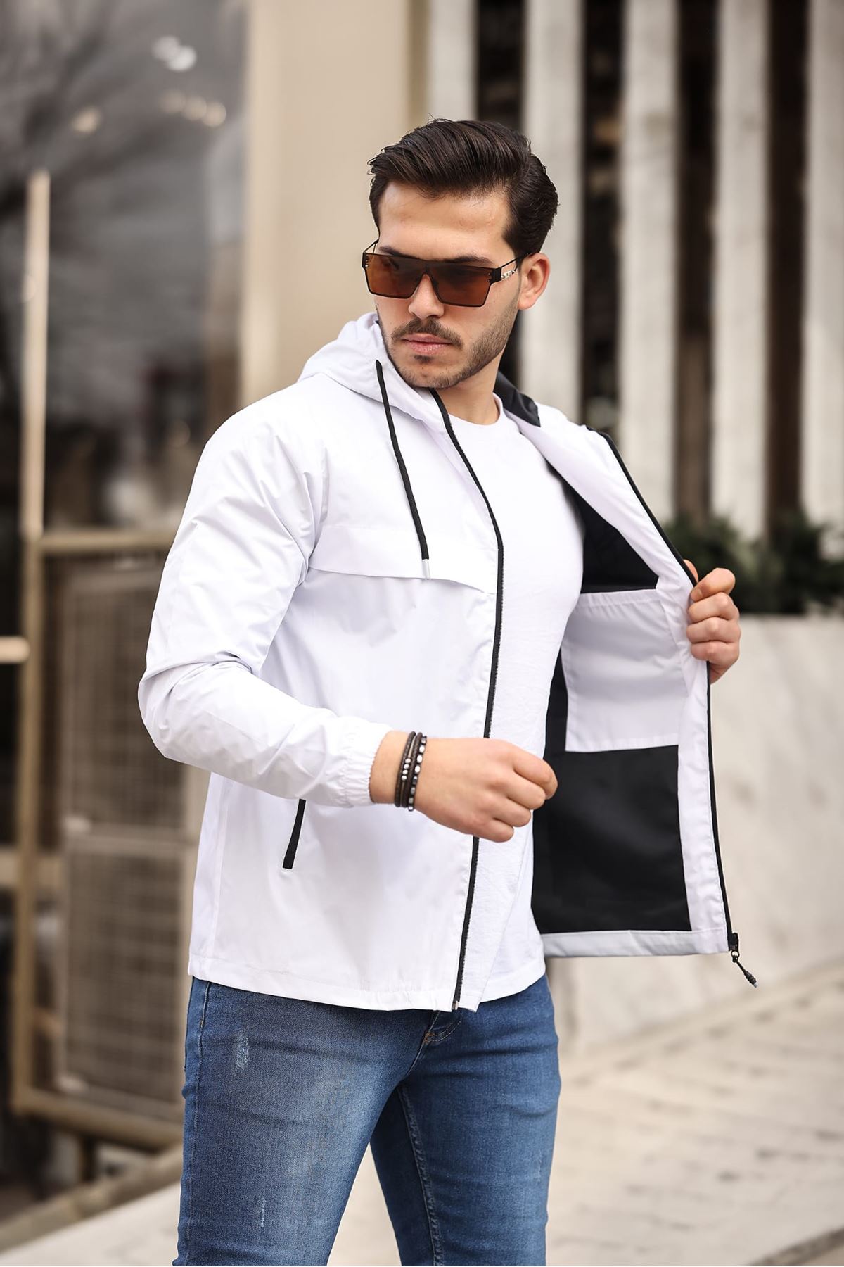 Erkek Içi Astarlı Suya Dayanıklı Kapüşonlu Cepli Yağmurluk BEYAZ