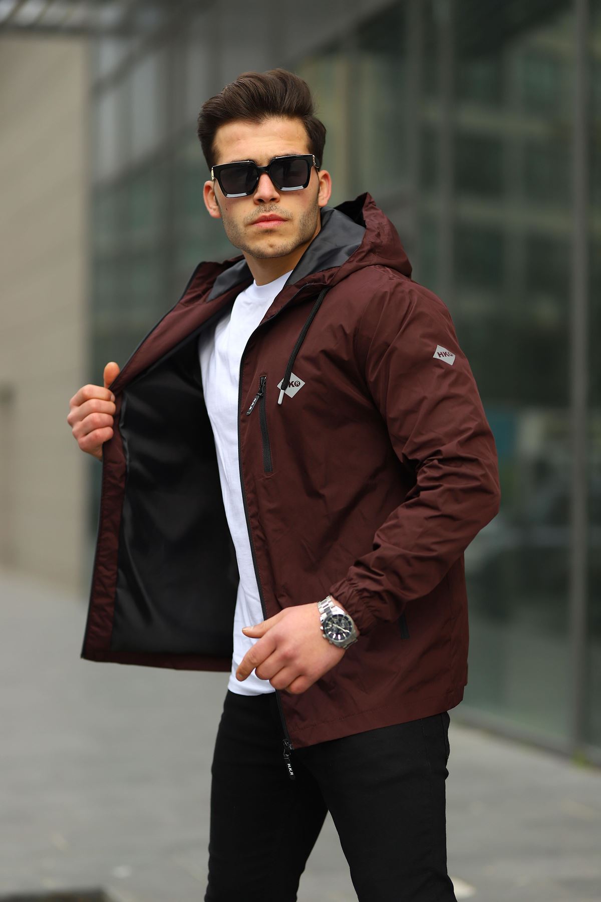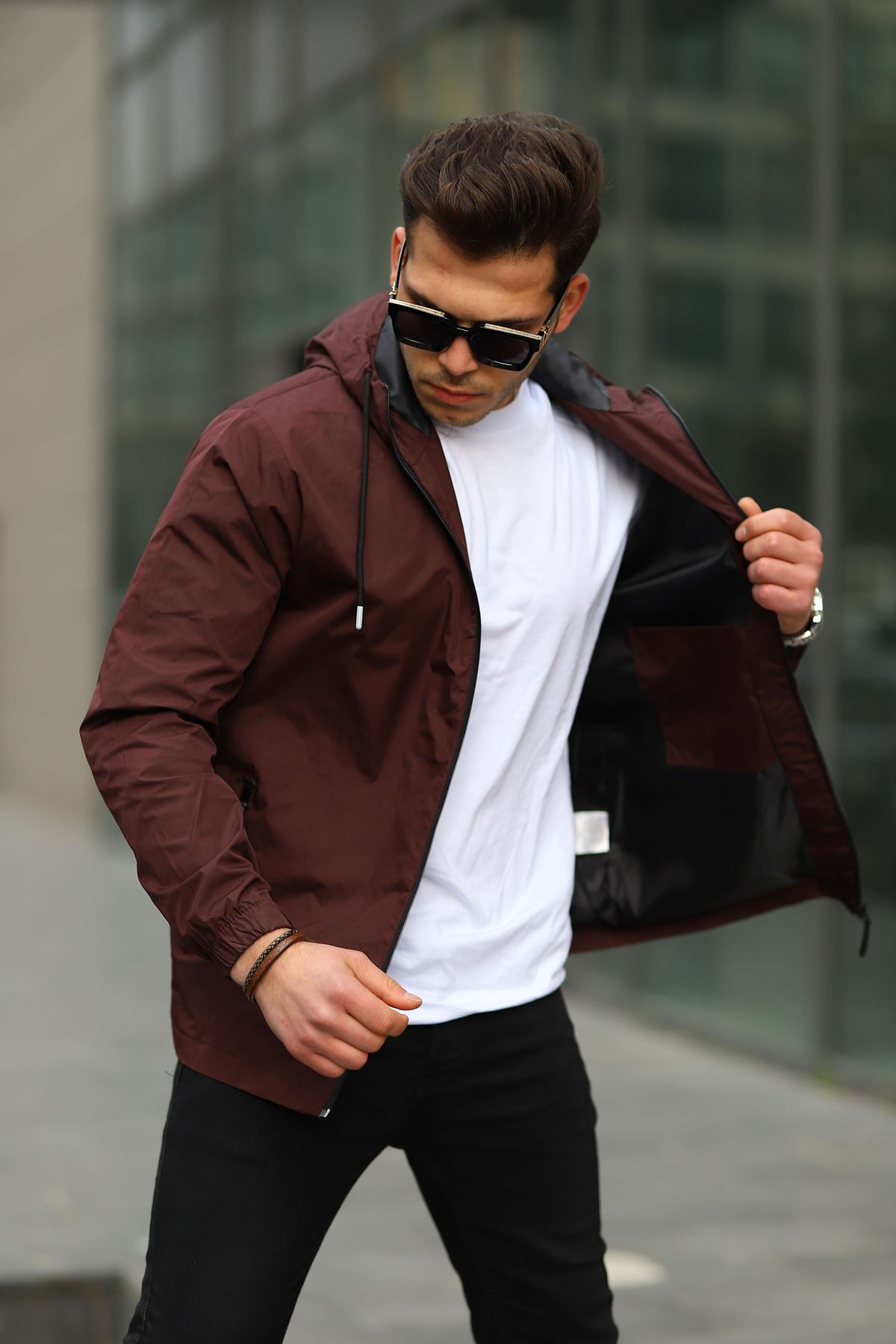 Erkek Içi Astarlı Suya Dayanıklı Kapüşonlu Cepli Yağmurluk BORDO