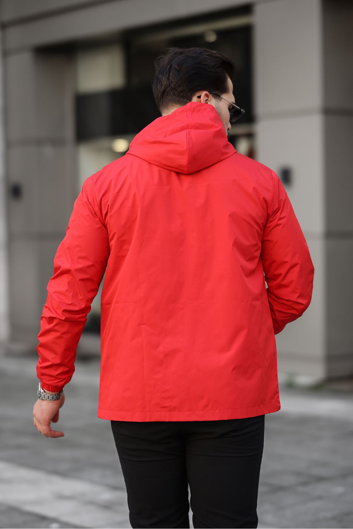 Erkek Içi Astarlı Suya Dayanıklı Kapüşonlu Cepli Yağmurluk KIRMIZI