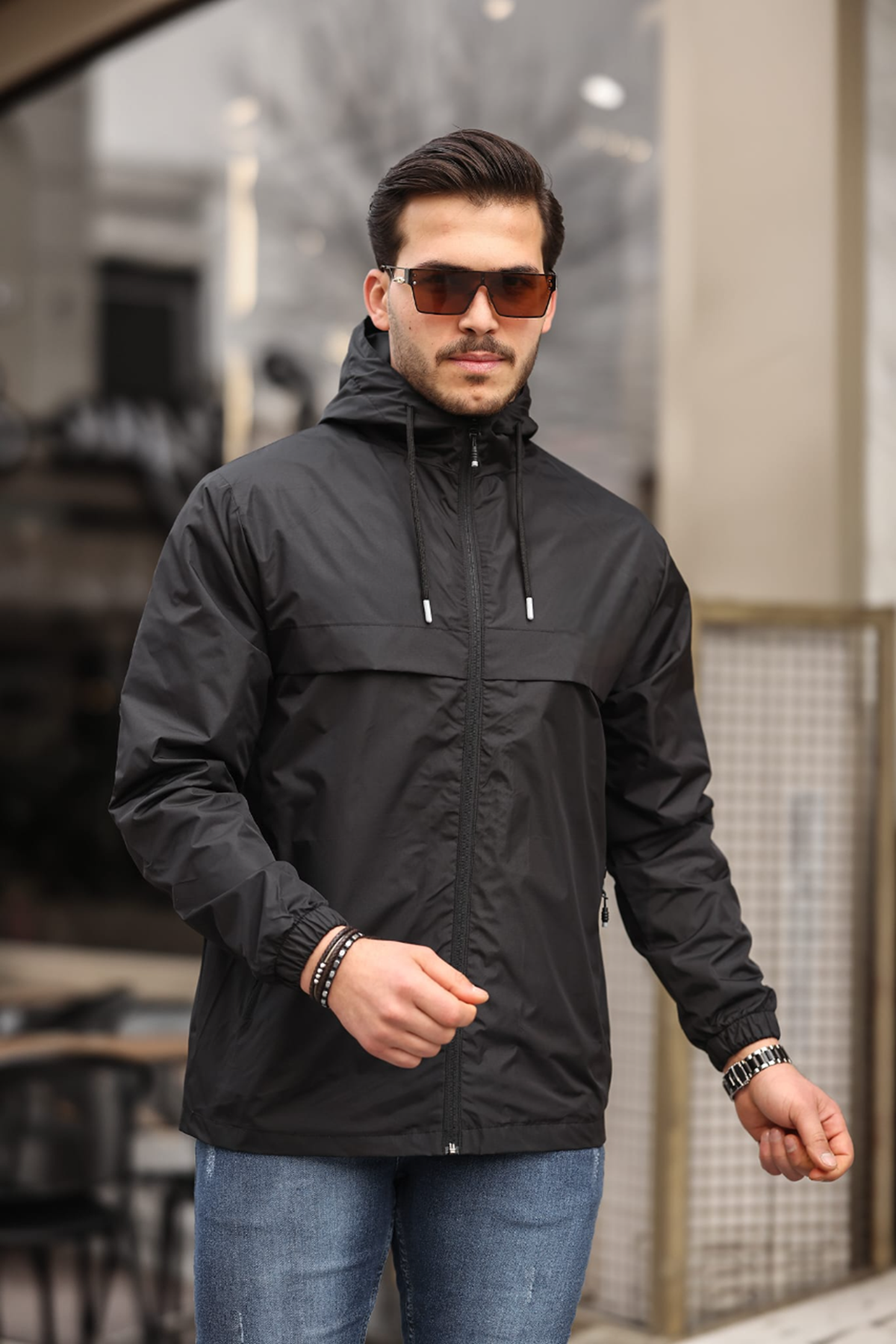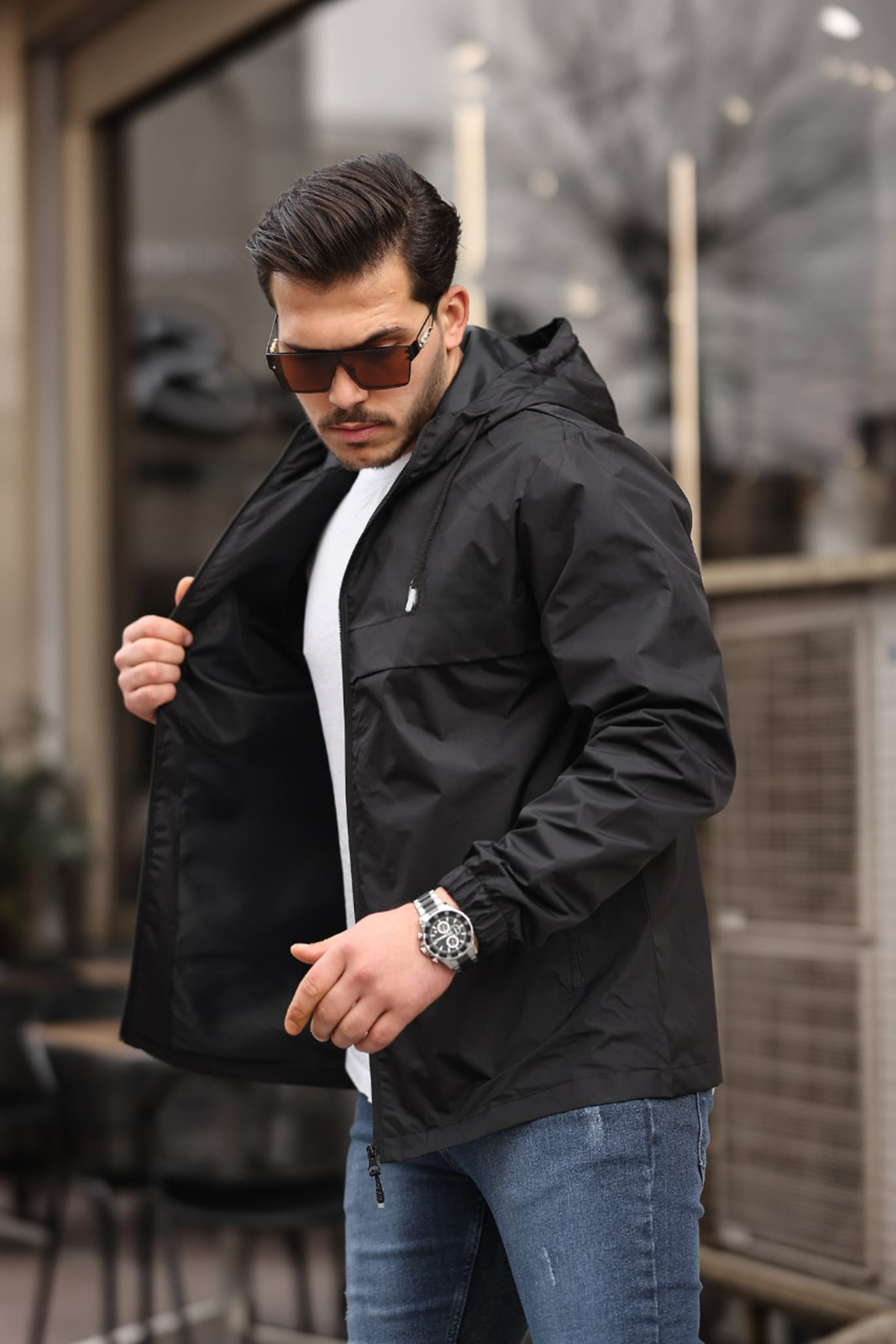 Erkek Içi Astarlı Suya Dayanıklı Kapüşonlu Cepli Yağmurluk SİYAH