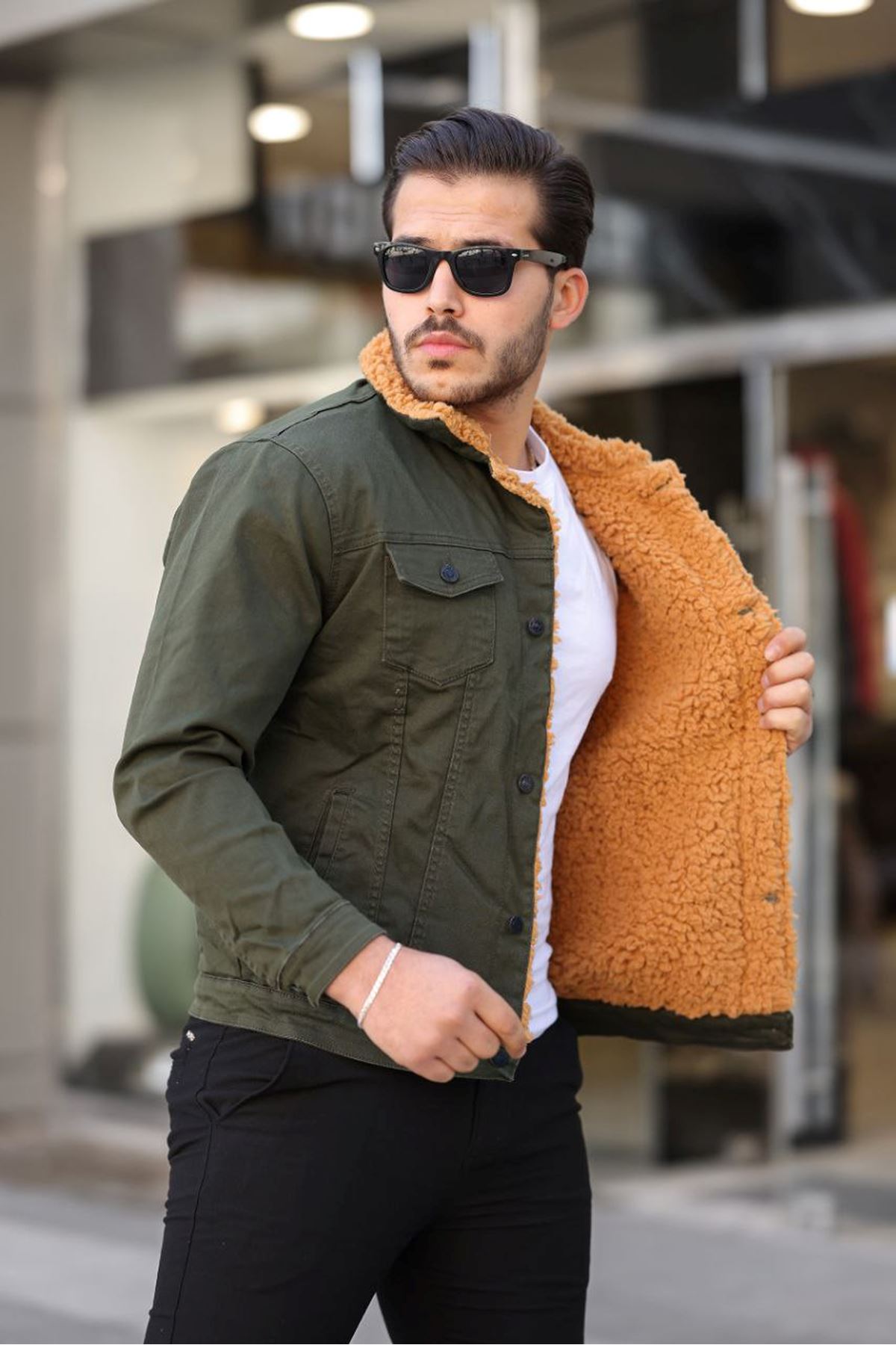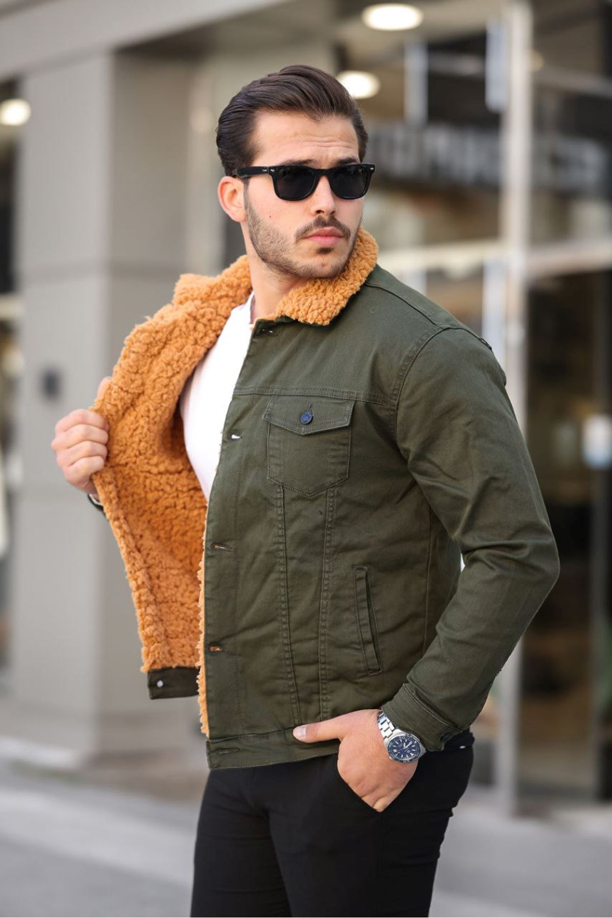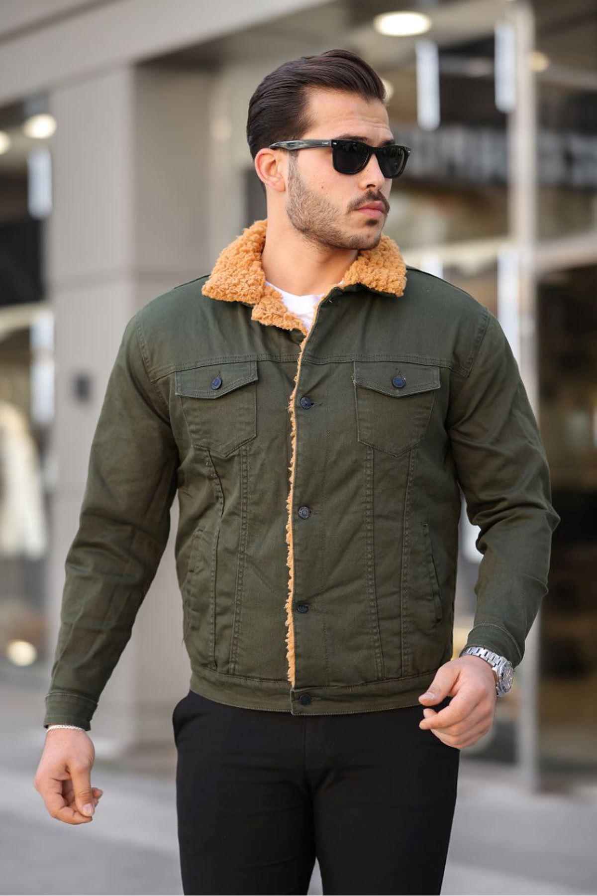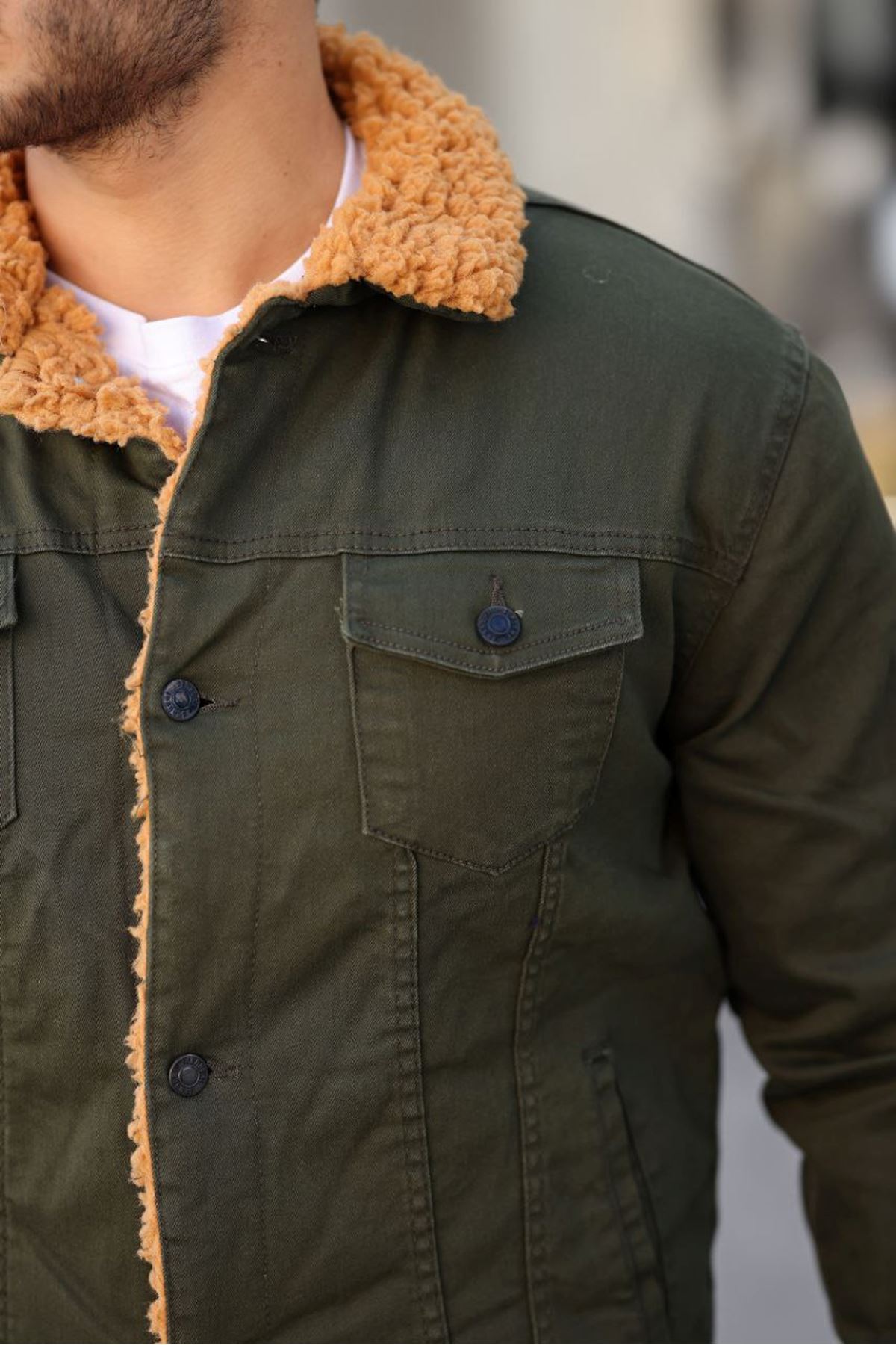 ERKEK İÇİ KÜRKLÜ KOT CEKET HAKİ-HAKİ