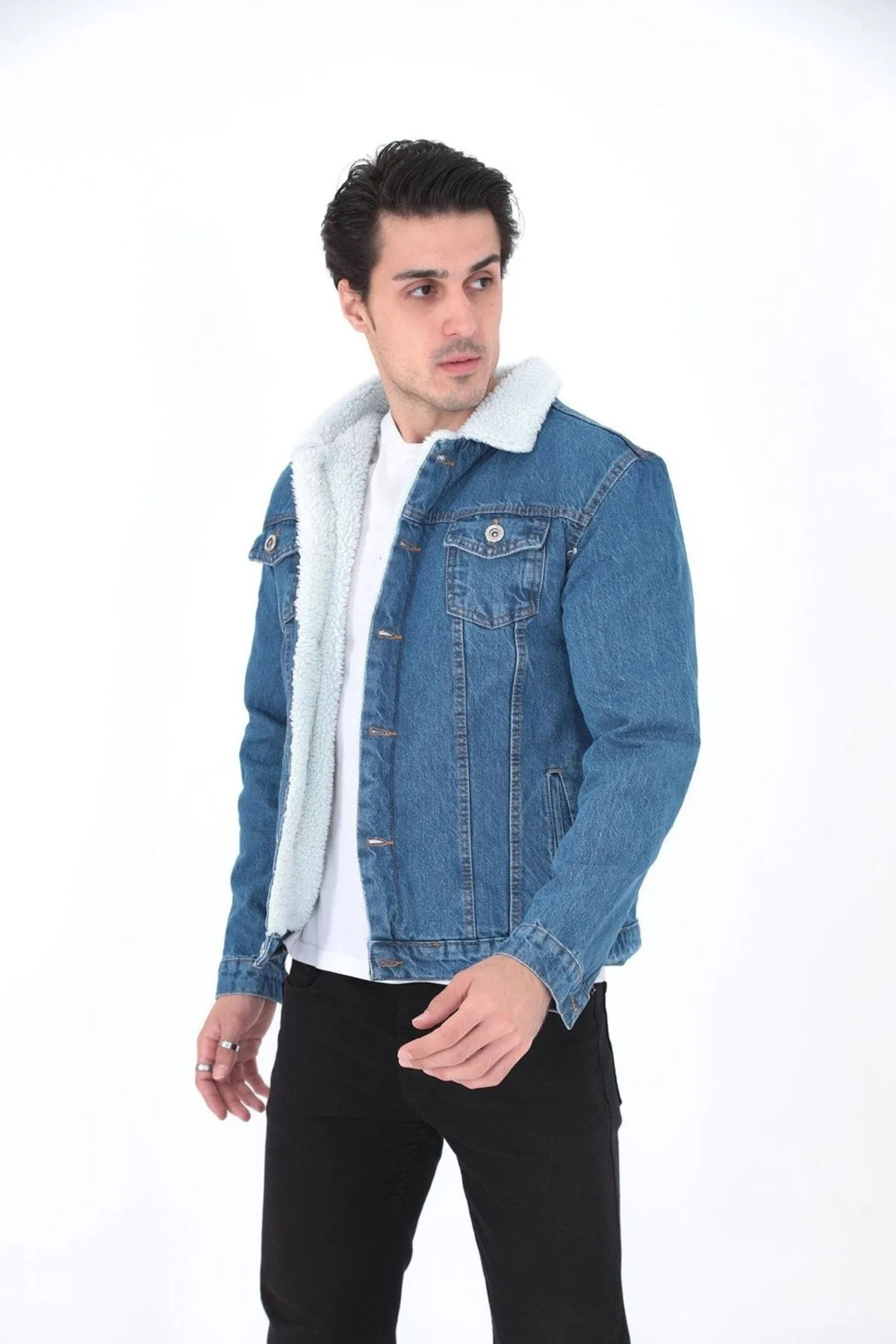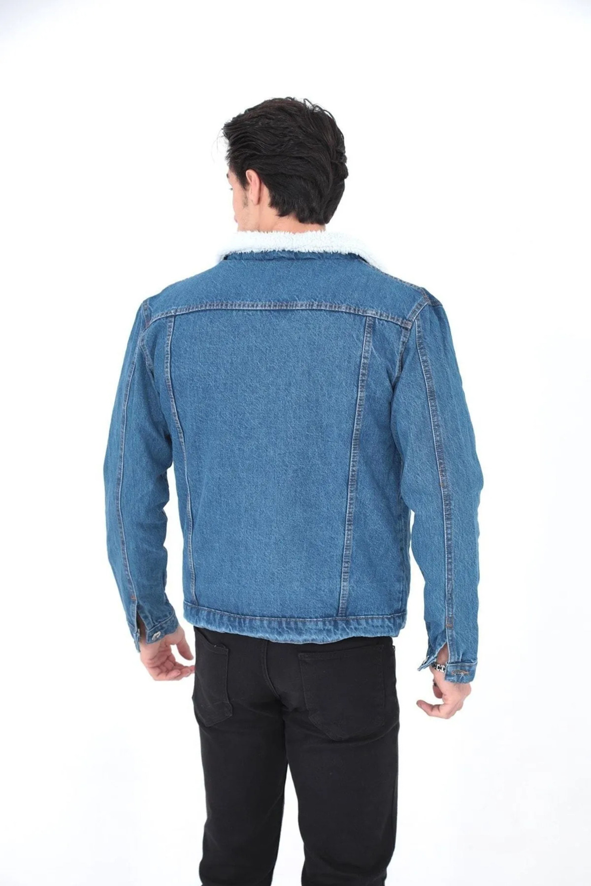 ERKEK İÇİ KÜRKLÜ KOT CEKET LACİVERT