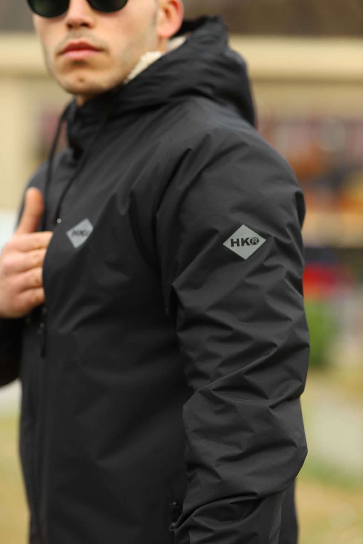 Erkek Içi Kürklü Suya Dayanıklı Kapüşonlu Cepli Yağmurluk SİYAH