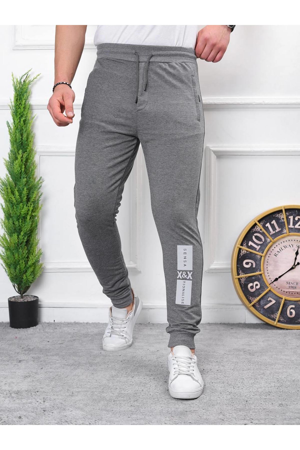 Erkek İki İplik Compact Kumaş Baskılı Eşofman FÜME
