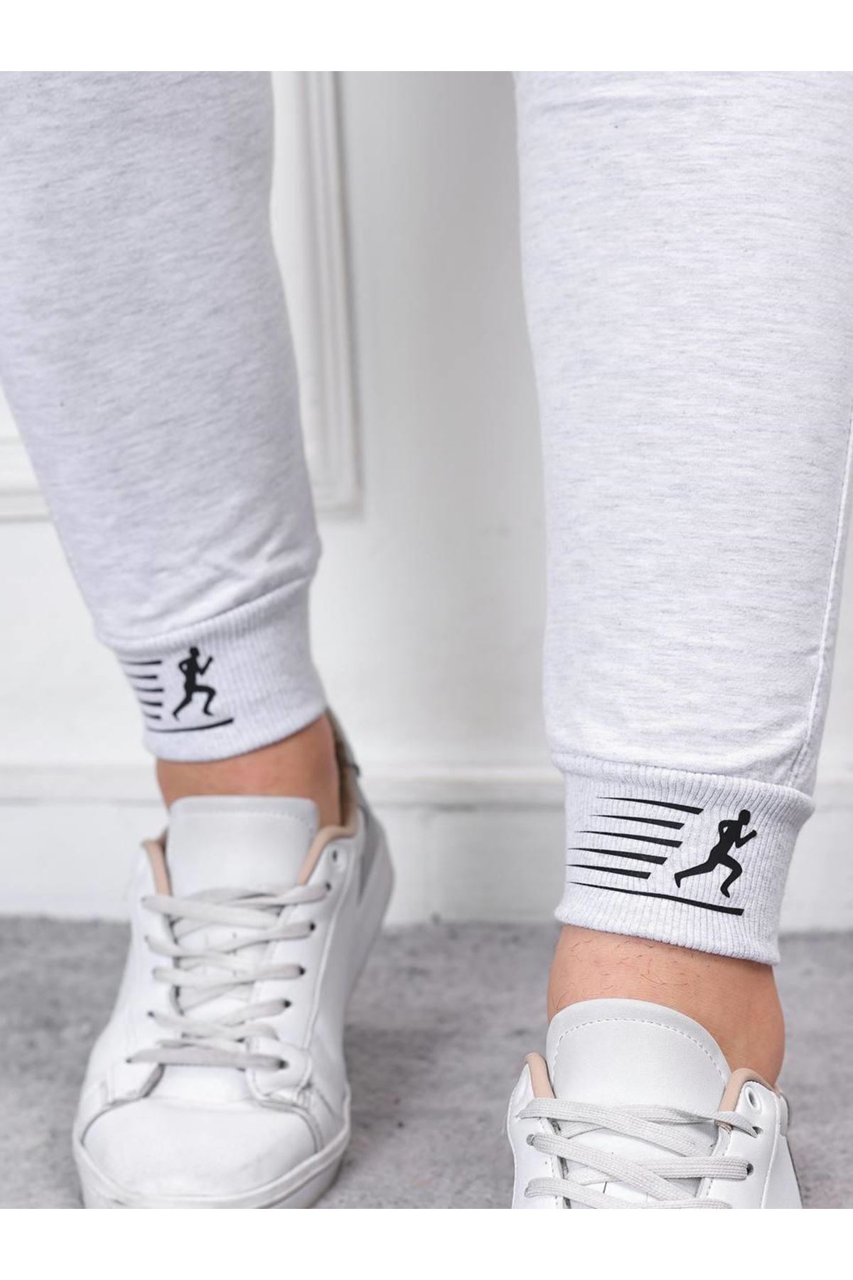 Erkek İki İplik Compact Kumaş Baskılı Manşetli Eşofman GRİ