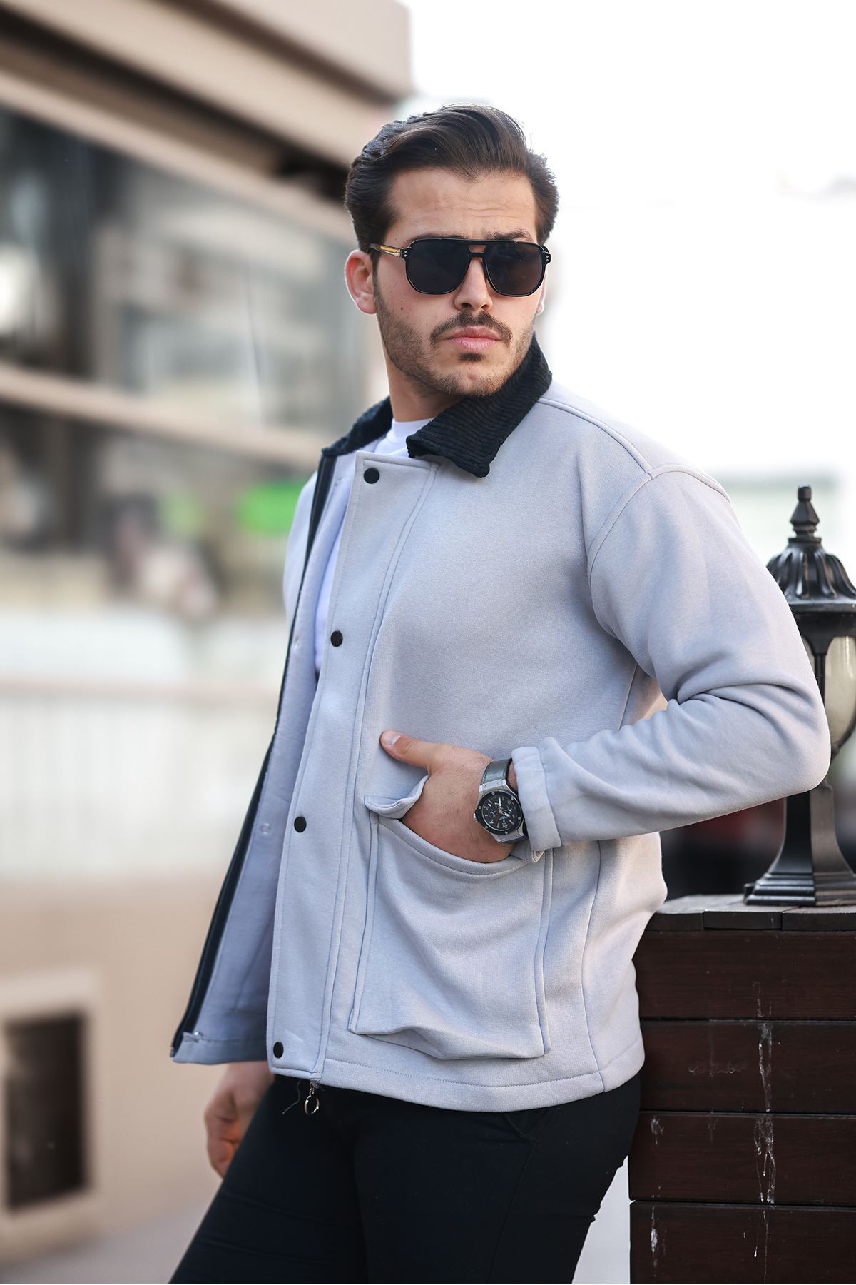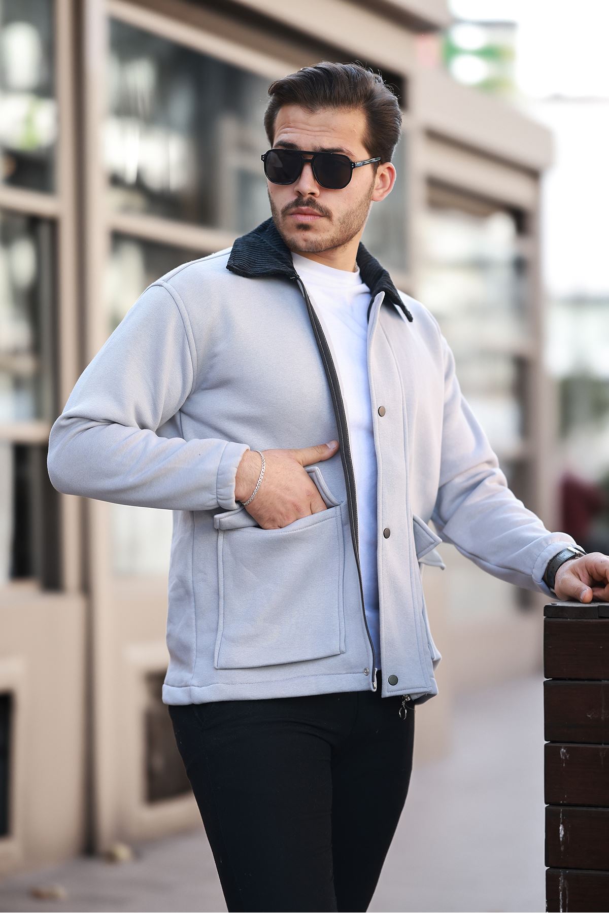 Erkek Kadife Yaka Ceket GRİ